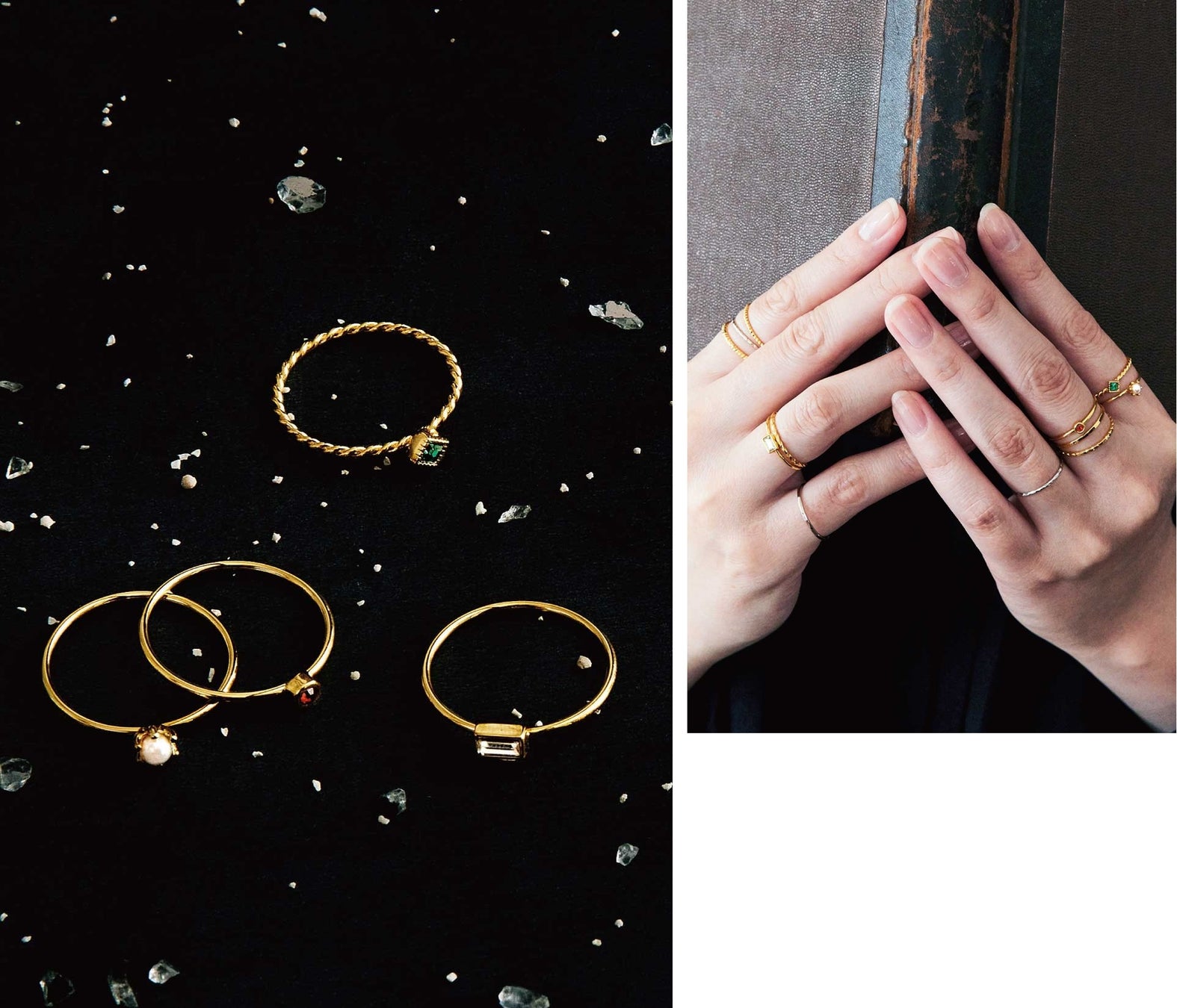 【星々のきらめきを重ねて楽しむ、大人の星屑リング】
