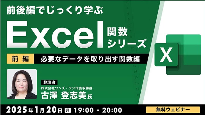 【中級者向け】“Excelのプロ”から学ぶ!必要なデータを取り出す関数をマスターして実務を効率化!1/20(月)、2/3(月)無料セミナー「前後編でじっくり学ぶ、Excel関数シリーズ」開催