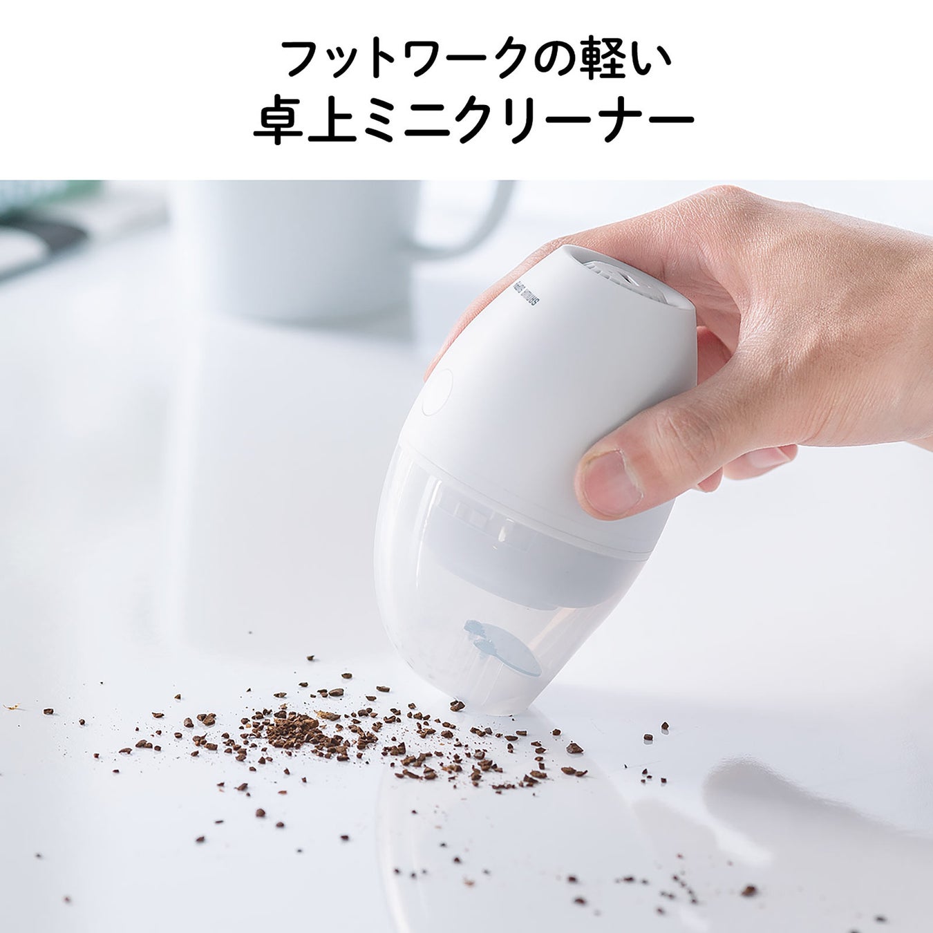 本製品は、小さなゴミをサッと吸い込むことができるミニクリーナーです。手のひらサイズでコンパクトな形状です。