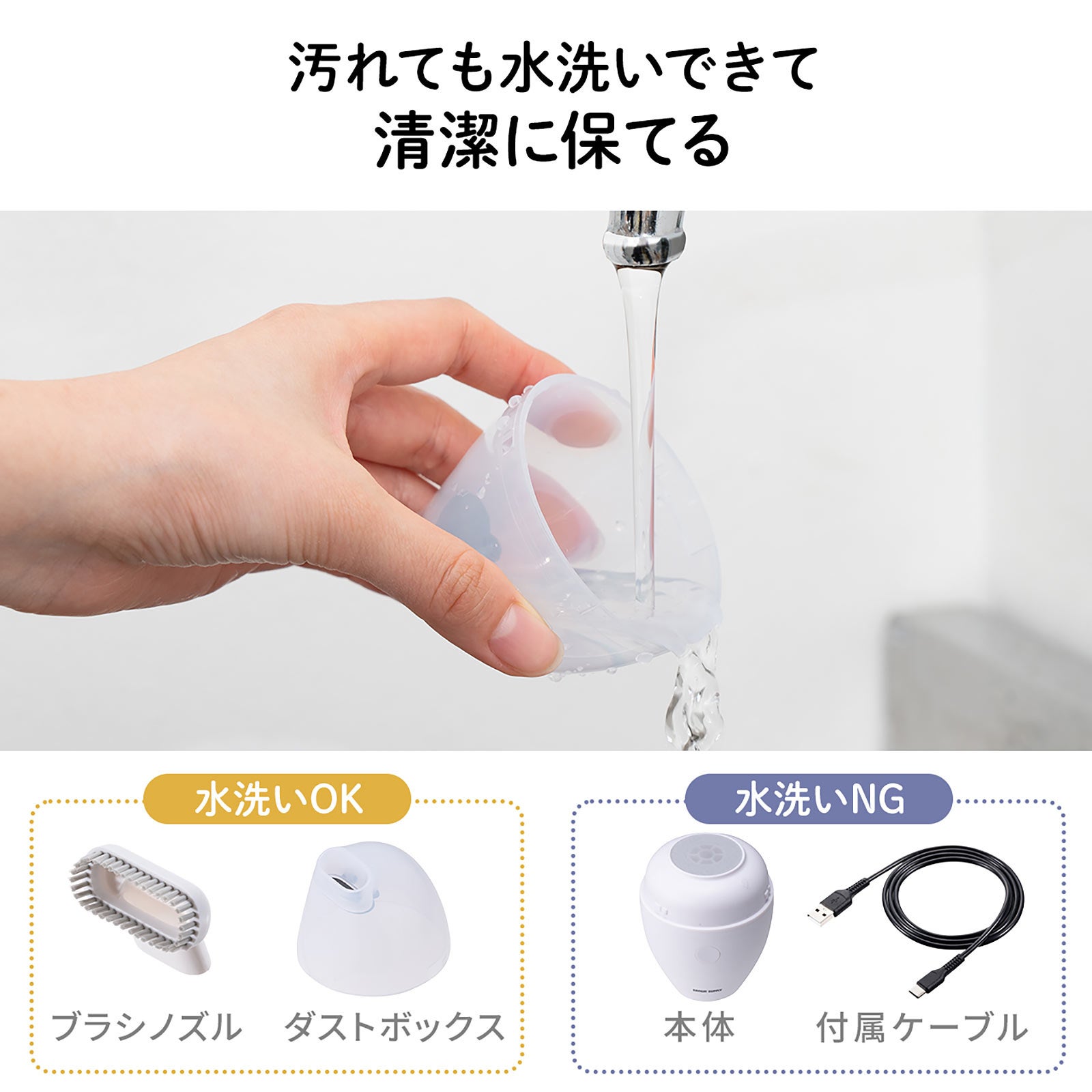 さらに、ダストボックスとブラシノズルは水洗いが可能で、しっかり乾燥させることで繰り返し使用ができます。