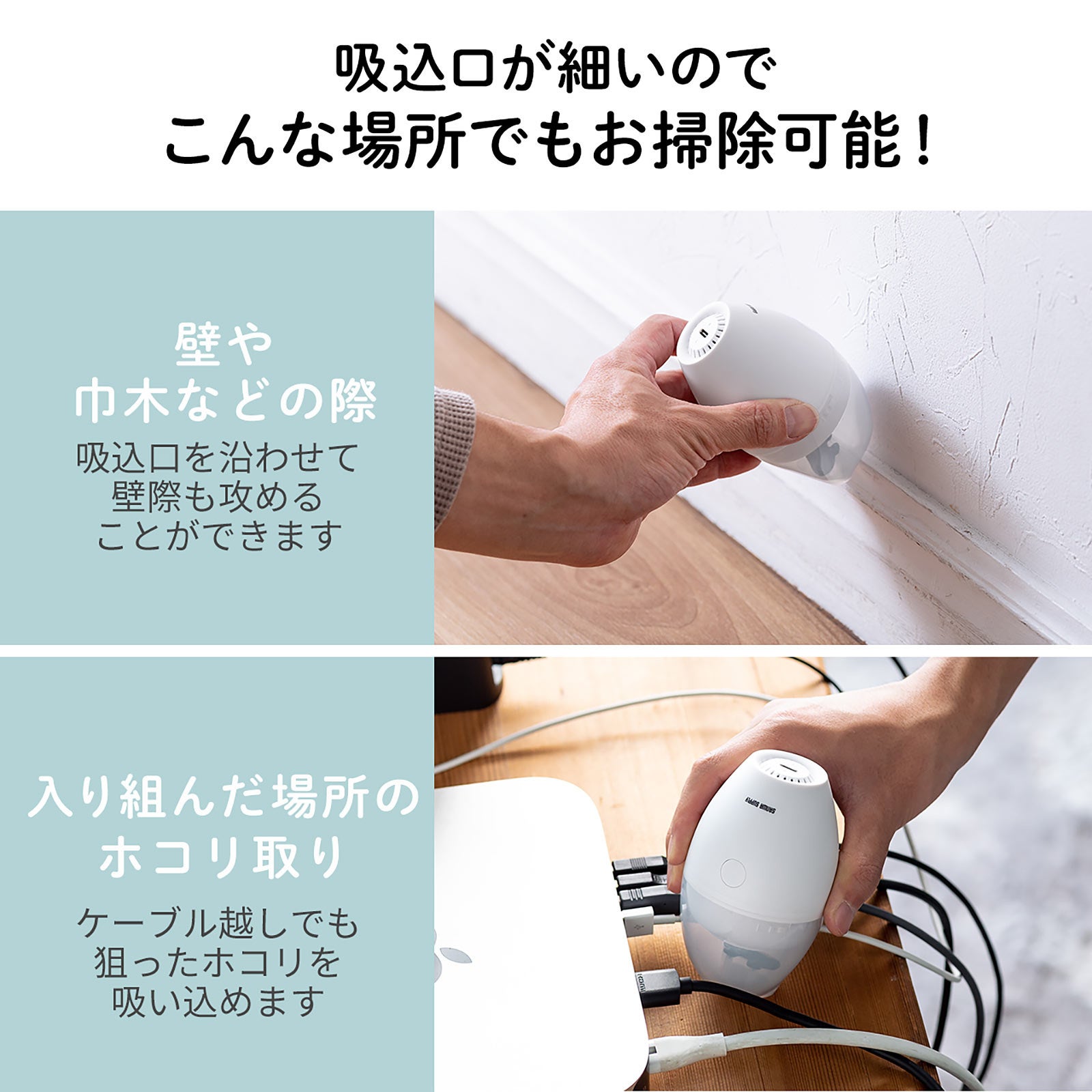 卓上で出るゴミ、食べこぼし、壁や巾木の隅、入り組んだ場所での用途に最適です。