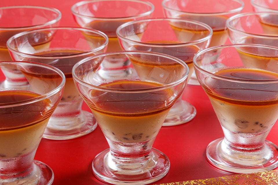 デザートコーナーにはとろけるチョコレートが噴水のように流れるチョコレートファウンテンをご用意。プチシューやワッフル、バナナやオレンジなどのフルーツをたっぷりのとろけるチョコレートにくぐらせてお召しあがりください。 また朝食ブッフェのデザートとしても人気の高い兵庫県産たまごと兵庫県産牛乳で作ったトリコ自家製カスタードプリンもご提供いたします。