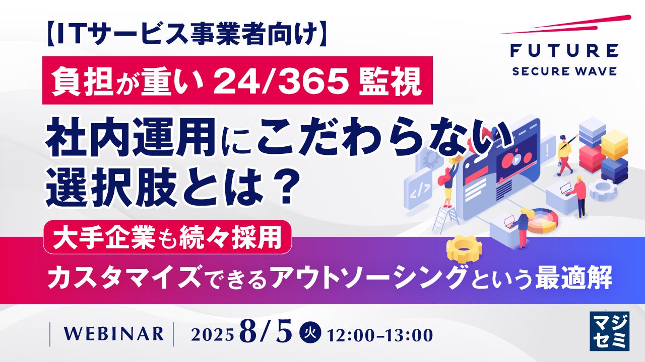 マジセミ株式会社は「【ITサービス事業者向け】負担が重い24/365監視、社内運用にこだわらない選択肢とは?」というテーマのウェビナーを開催します。