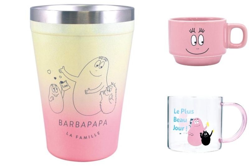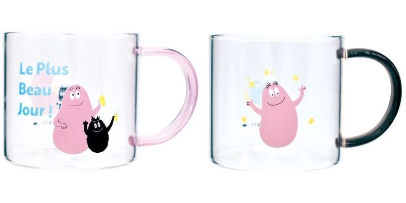 - 【バーバパパ】耐熱ガラスマグ(ピンク/グレイ) 各2,200 円(税込)