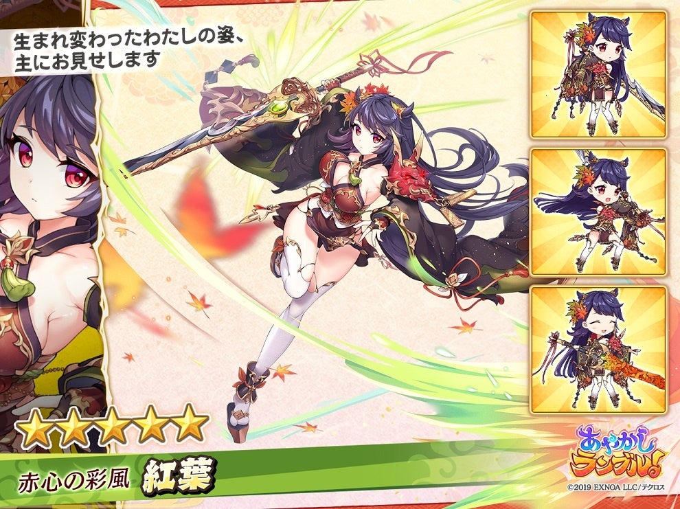 DMM GAMES『あやかしランブル!』にて、新たに「★5トヨタマヒメ」「★5紅葉」が追加!さらに「真華の契り」の対象式神には「★5弁財天」が追加!