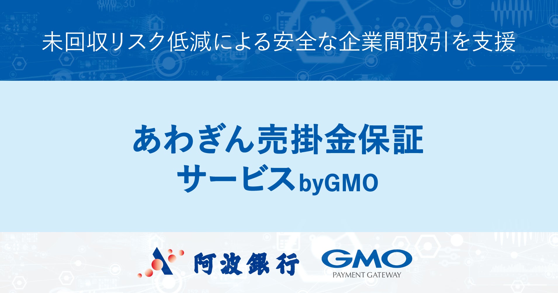 GMOインターネットグループにおいて、総合的な決済関連サービス及び金融関連サービスを展開するGMOペイメントゲートウェイ株式会社(東証プライム:証券コード 3769、代表取締役社長:相浦 一成 以下、GMO-PG)は、株式会社阿波銀行(代表取締役頭取:長岡 奨 以下、阿波銀行)と協業し、2023年3月1日(水)より、阿波銀行の取引先企業に対して「あわぎん売掛金保証サービス byGMO」を提供いたします。
