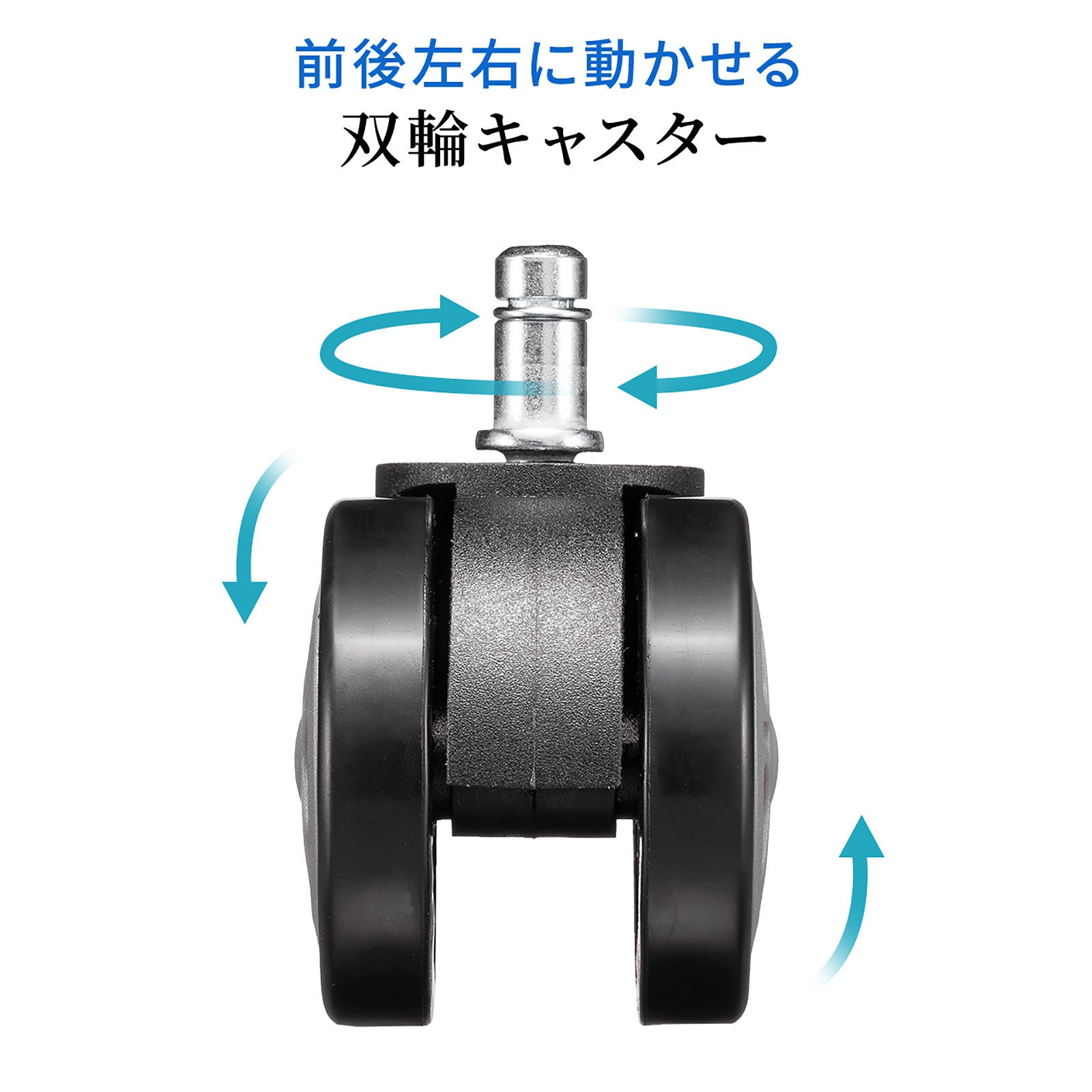 ゲーミングチェア 交換用キャスタ 大型 硬質ウレタン 双輪キャスター 5個入りブラック グレー
