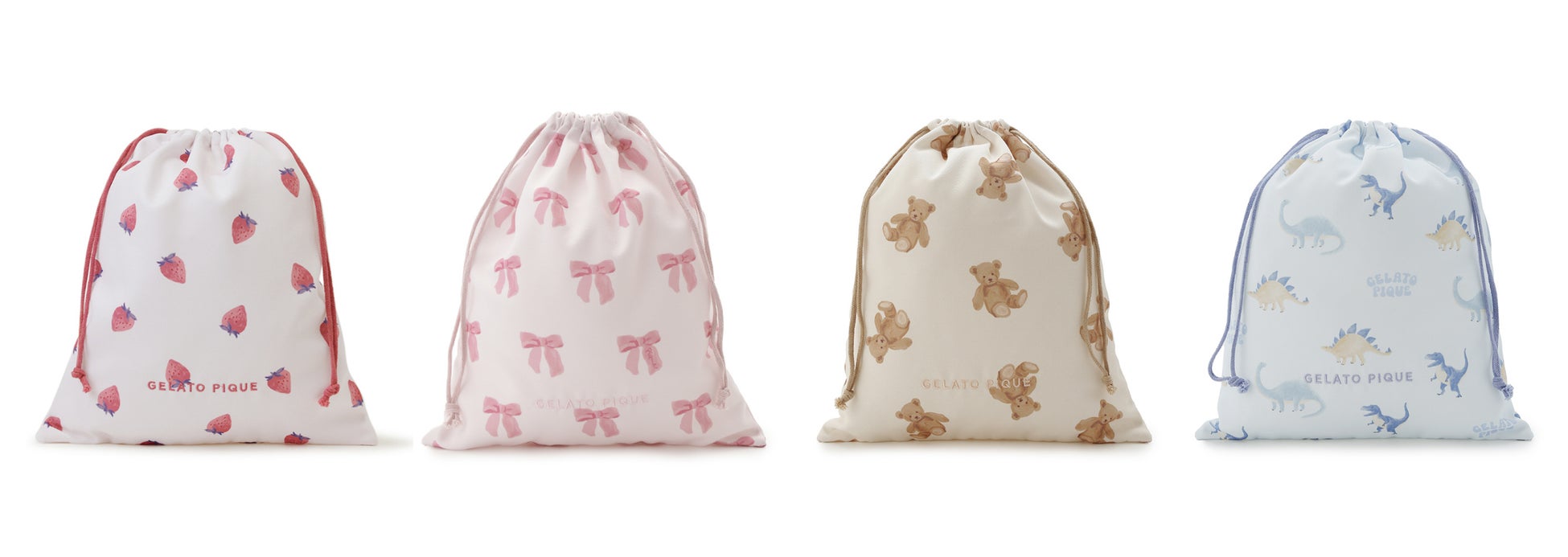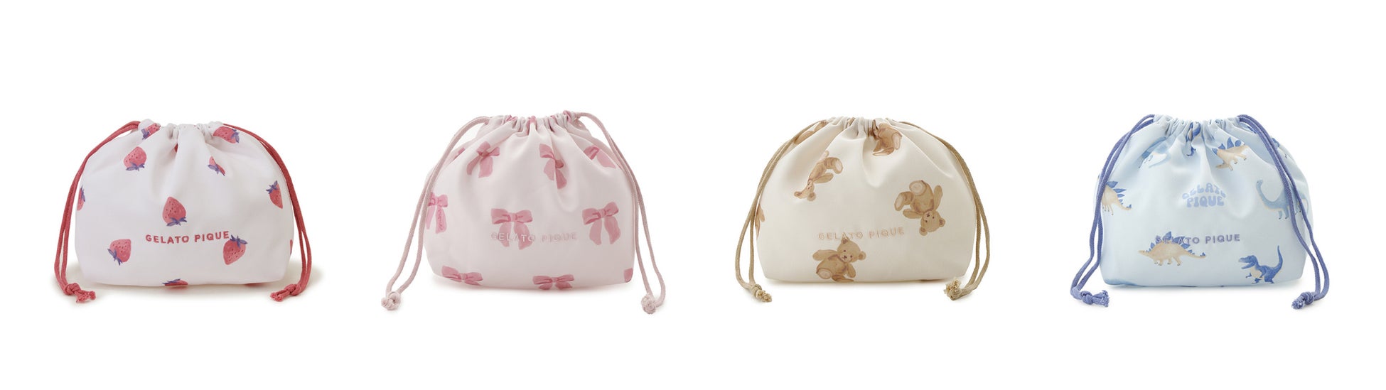 ストロベリー、リボン、ダイナソー、ベアの4つのモチーフが、入園・入学や新学年のスタートを華やかに彩ります。