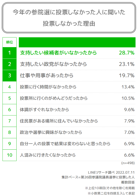 LINEリサーチ、全国の男女を対象に参院選に関する調査を実施(選挙後調査)