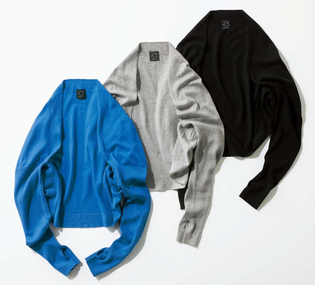 とびきりスタイリッシュなデザインのボレロニットカーディガン。ボレロとしてだけでなく、ストールにもなる2-way仕様です。首の後ろからサムホール付きの手の甲までしっかり隠してくれるデザインは、UV対策、冷房対策、肌見せ対策など、大人の夏のお悩みを丸ごとカバーしてくれます。アーム部分は細めのリブ仕様になっていて、着用すると腕にほどよくフィット。ストールとして首に巻くときも、先端がすとんと落ちてきれいな縦ラインが生まれます。混紡率にこだわったシルク混素材は、軽やかで着心地も抜群です。