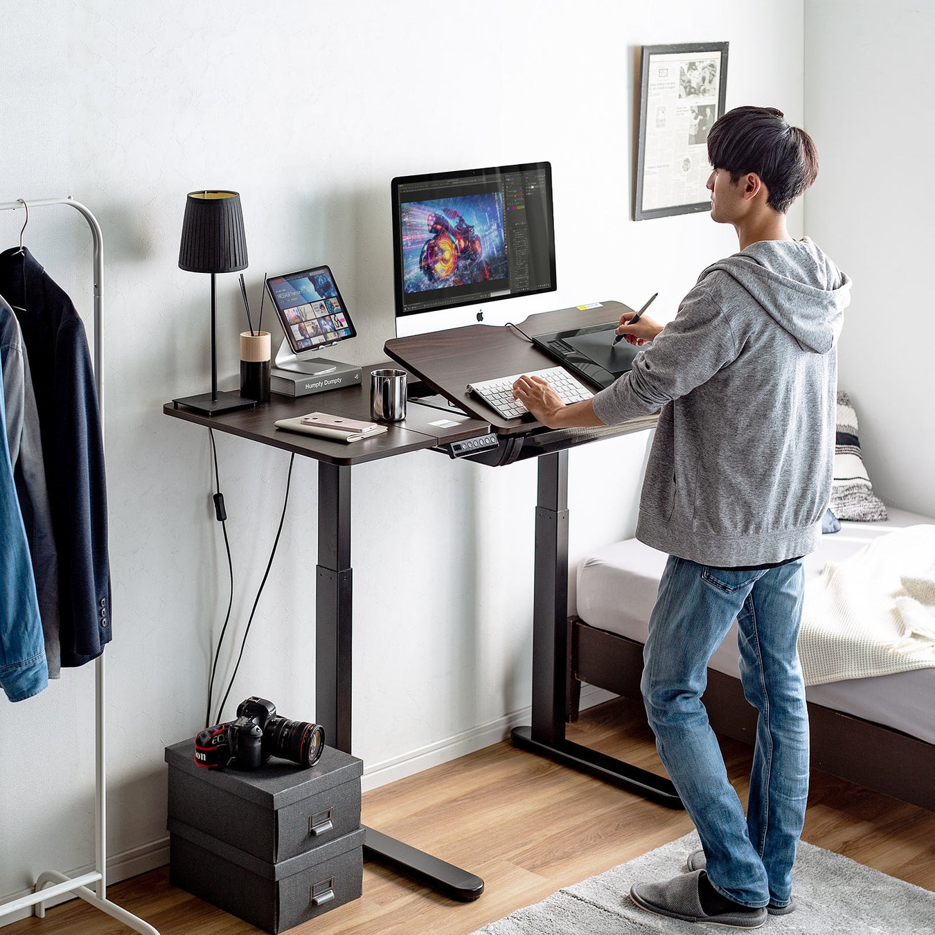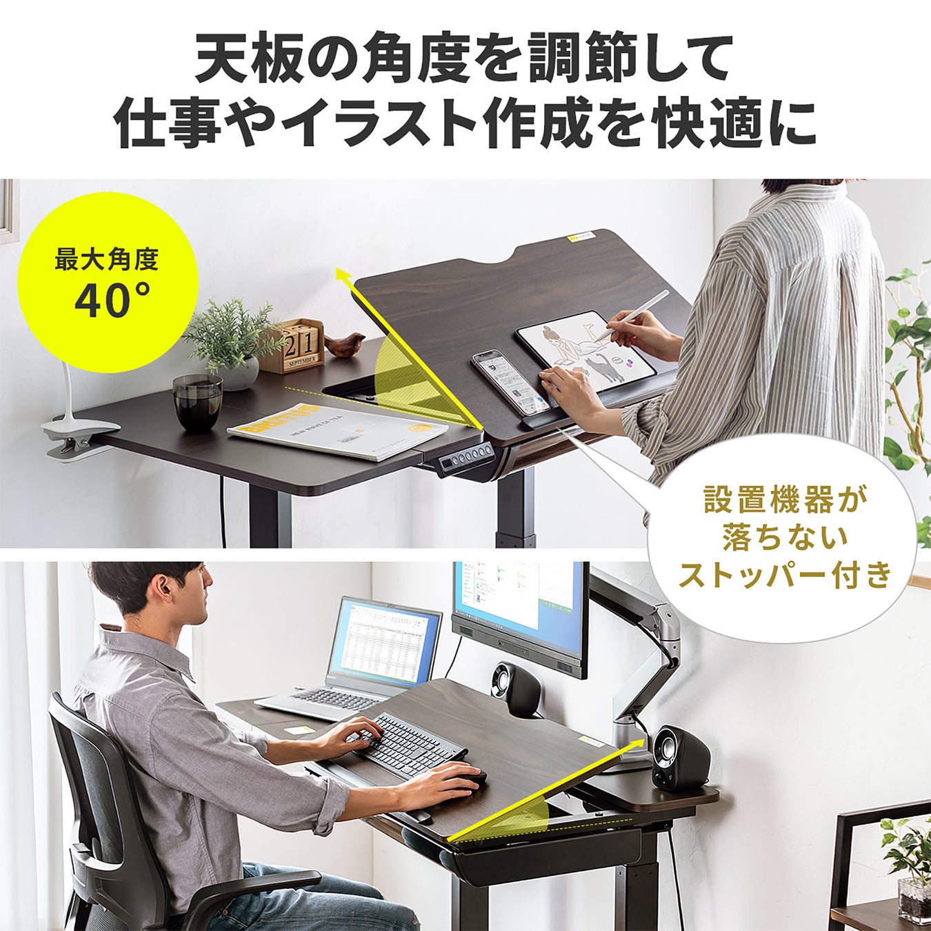「引き出し付」「角度調節」等で快適な作業空間をつくれる電動昇降デスクを発売