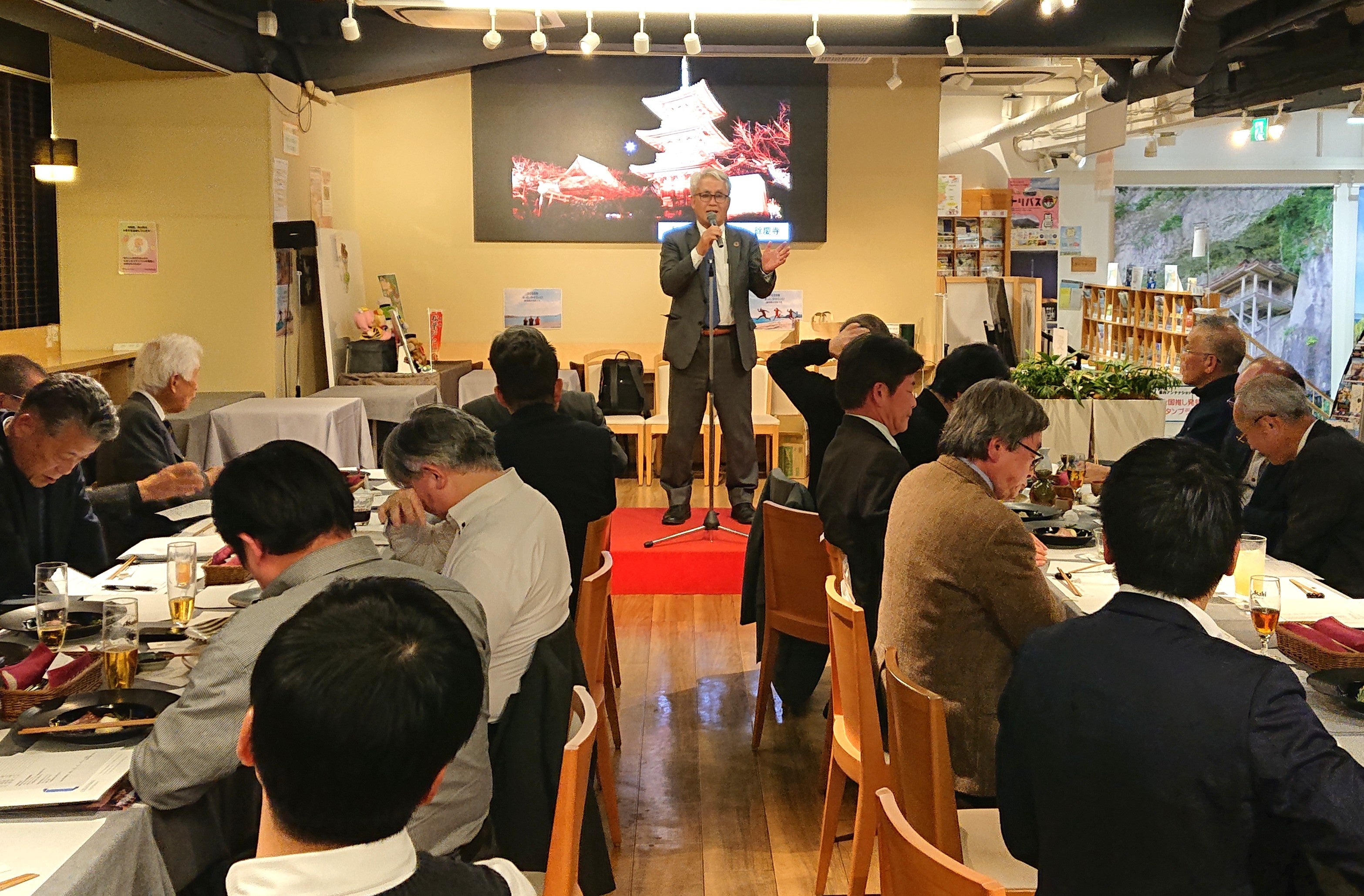 同会は、Alumni東京支部が主催しており、同支部の活動の輪を広げていく上で、各学部同窓会メンバーを中心に学部を超えて同窓生が集い、情報交流を行う場となっています。本年度3回目の開催となる今回は、さまざまな学部・大学院から24人の同窓生とともに、本会の代表である小長啓一Alumni(全学同窓会)会長(法文学部:現法学部卒)と岡山から那須保友学長(医学部卒)らが参加しました。