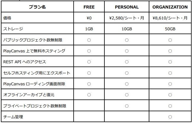 - 【「PlayCanvas」ご利用料金】