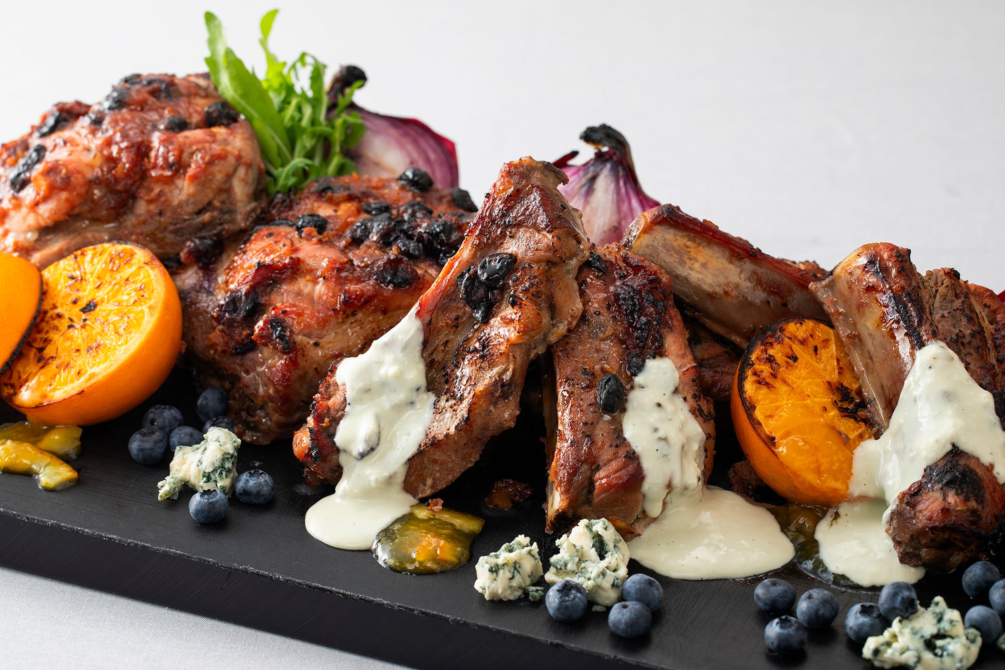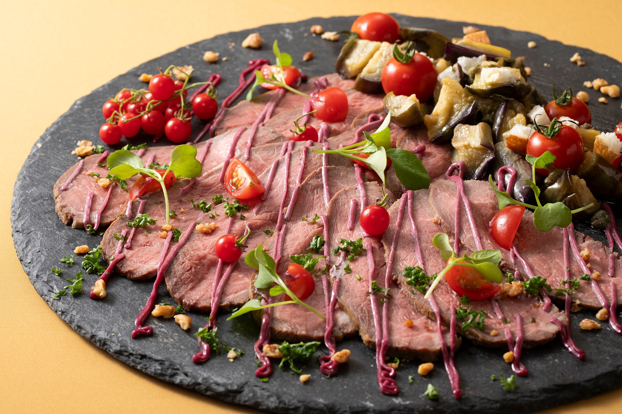 ☆牛もも肉のローストビーフ&ミニビーフステーキ/★国産牛もも肉のローストビーフ&ミニビーフステーキ/★マンゴーでマリネしたバックリブのオーブン焼き ヨーグルトとケールのソース