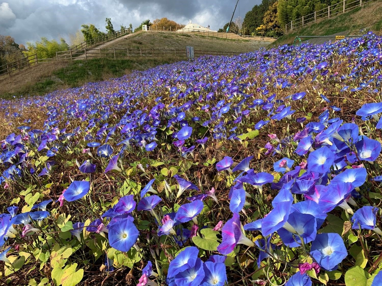 牽牛子塚古墳周辺にアサガオを咲かせ、全国的にも珍しい古墳×花の景観をお楽しみいただきます。
