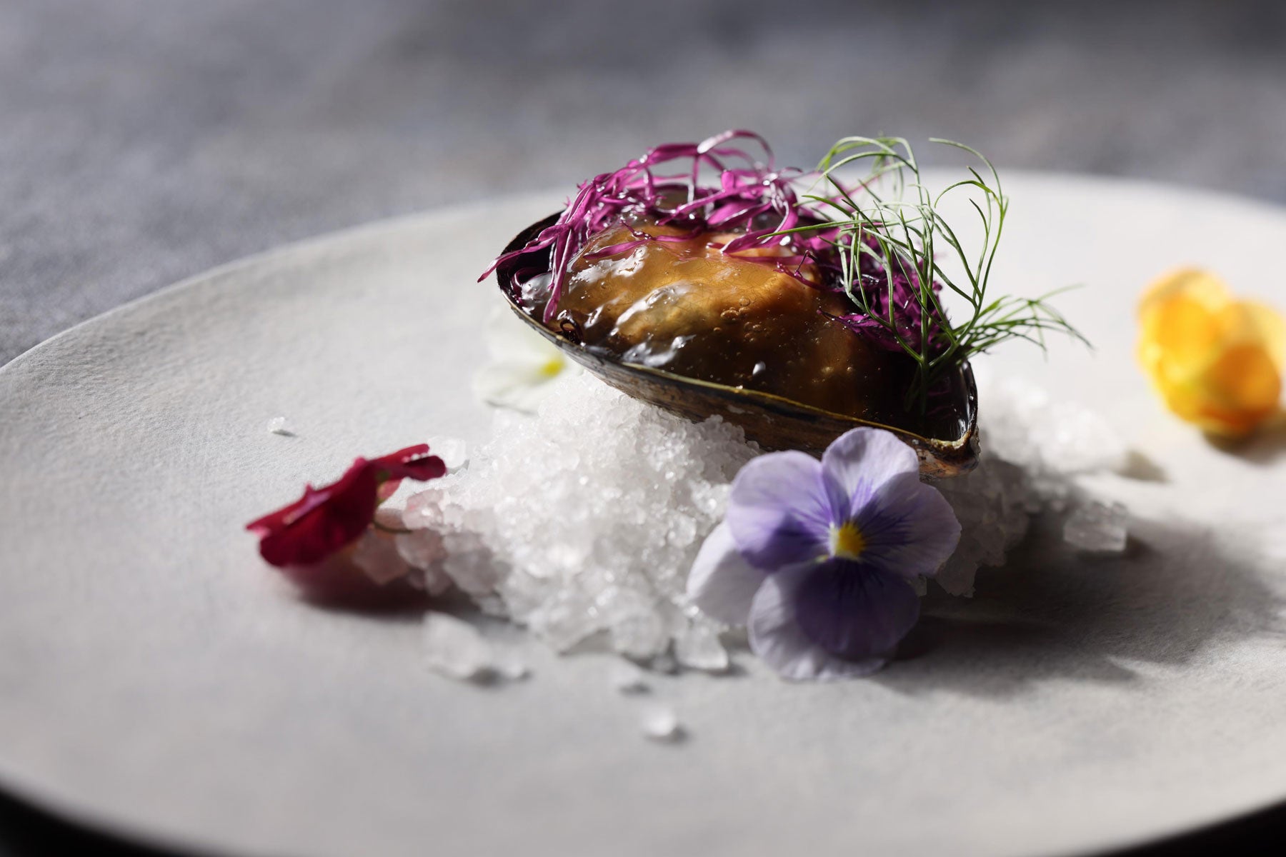 ・陸奥湾産ムール貝の白ワイン蒸し 津軽海峡の塩ジュレ