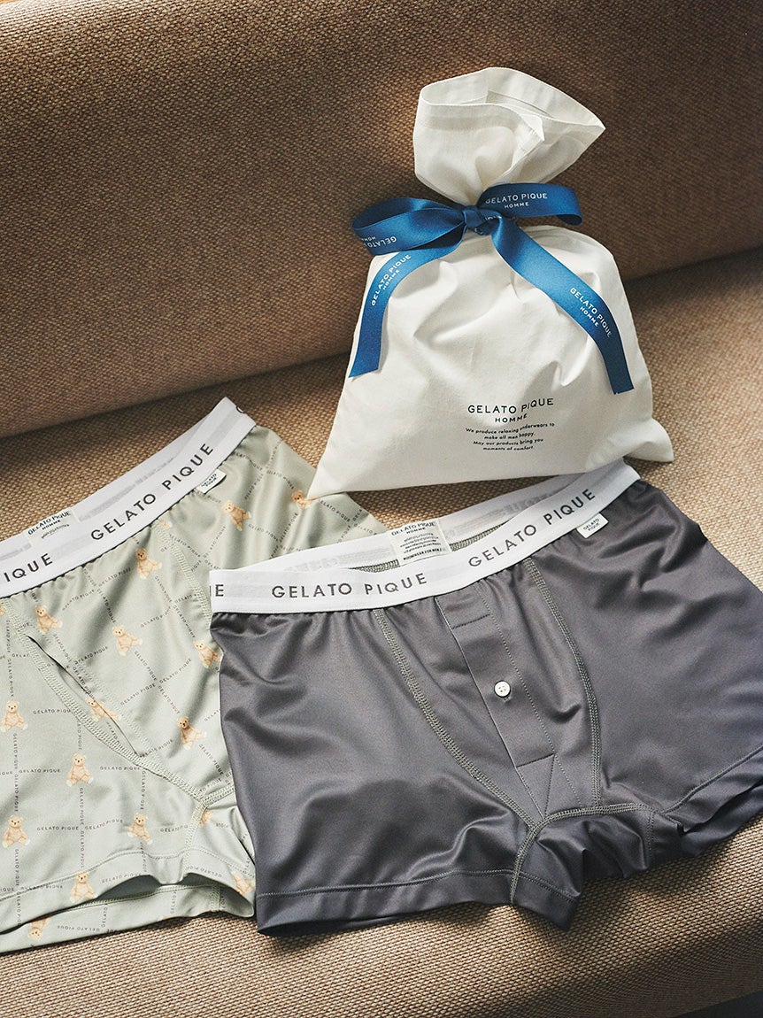gelato piqueでおなじみのオリジナルベア柄と、使いやすい無地デザインの2点をセットにした、オンラインストア限定のボクサーパンツを数量限定でご用意しました。