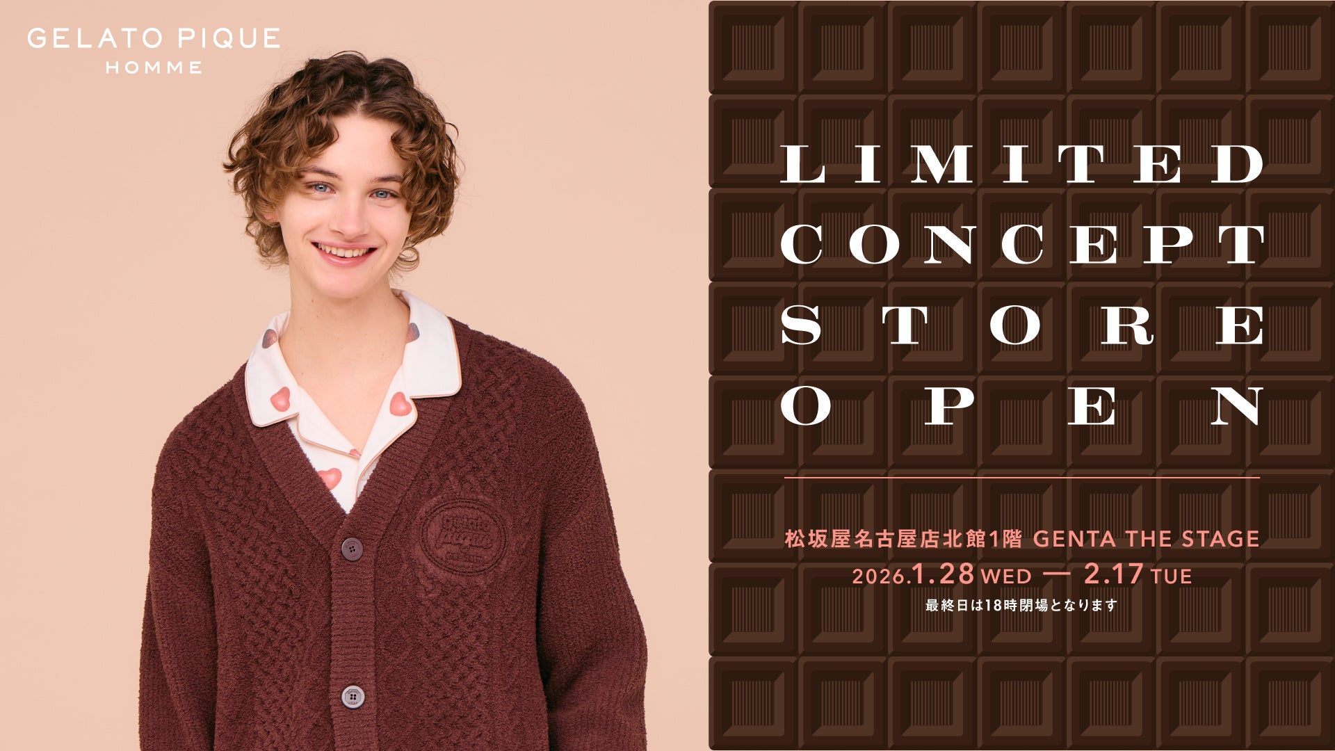 株式会社マッシュスタイルラボ(本社:東京都千代田区麹町/代表取締役社長:近藤広幸)が運営するルームウェアブランド「GELATO PIQUE HOMME(ジェラート ピケ オム)」は、2026年1月28日(水)~2026年2月17日(火)の期間、松坂屋名古屋店 北館1Fにてリミテッドコンセプトストアをオープンいたします。