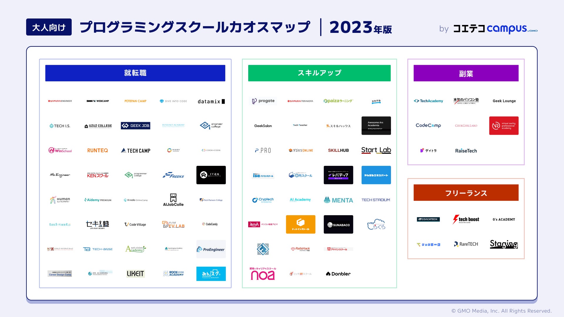 ニーズに応えるスクールが一目でわかる!『2023年版大人向けプログラミングスクール カオスマップ』を初公開 【GMOメディア】