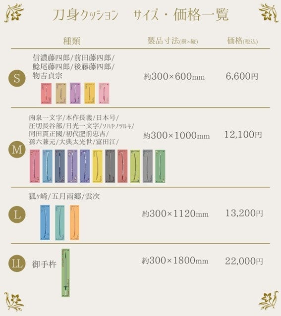 刀身クッション 全20種 6,600円(税込)~22,000円(税込)