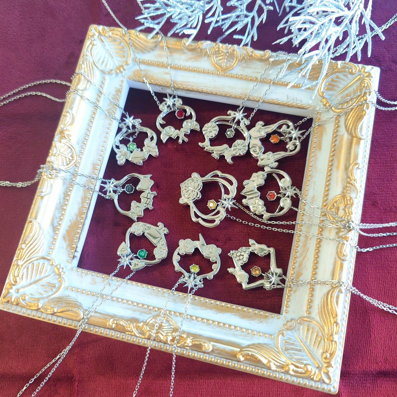 それぞれの刀をイメージしたモチーフや花々をあしらった、繊細ながらも存在感のあるネックレスです。サークル型のペンダントトップは取り外し可能で、シンプルなネックレスとしても楽しめる2way仕様。気分や装いに合わせて、さりげなく表情を変えてくれます。