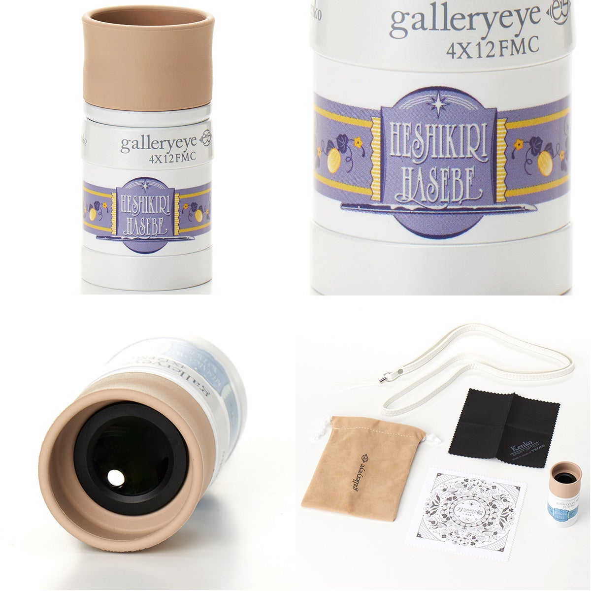 本体には、ケンコー・トキナー製「ギャラリーEYE 4×12」を採用。美術館や博物館での鑑賞に特化した設計で、最短合焦距離はわずか19cm。刀身の細かな彫金や刃文まで、くっきりと捉えることができます。全レンズ・プリズム面にフルマルチコーティングを施し、明るくクリアな視界を実現。眼鏡をかけたままでも使いやすいロングアイレリーフ設計で、長時間の使用でも疲れにくいのも嬉しいポイントです。