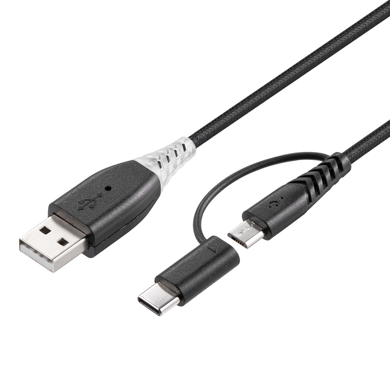 充電お知らせケーブル 2in1 USB Type-Cケーブル 音 光 USB2.0 1m 充電 データ転送 スマホ タブレット ブラック