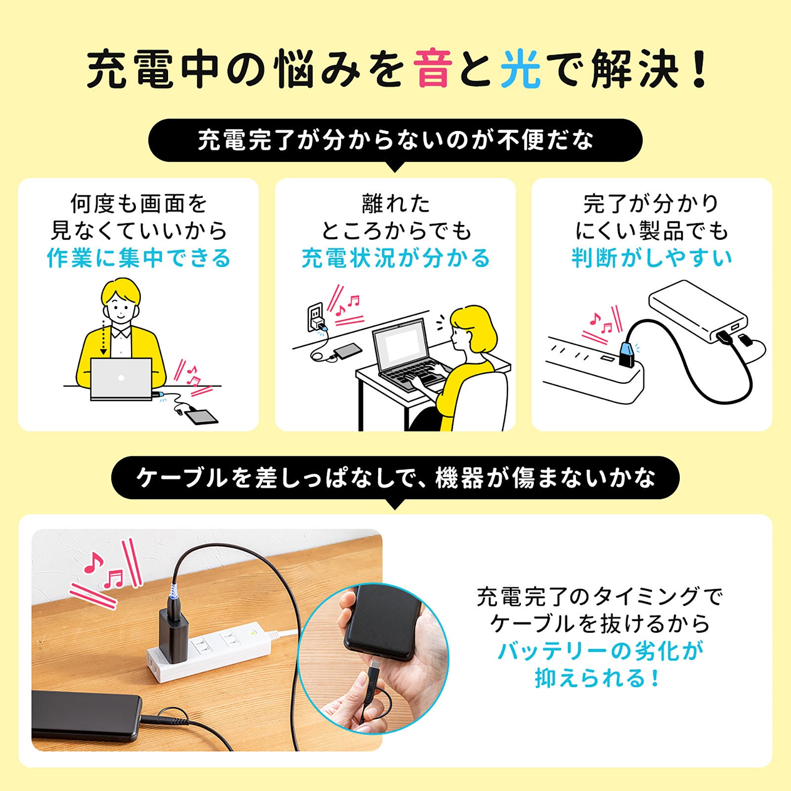 音と光で充電完了をお知らせ!アラーム&お知らせLED付のmicroUSB・Type-Cケーブルを12月23日に発売