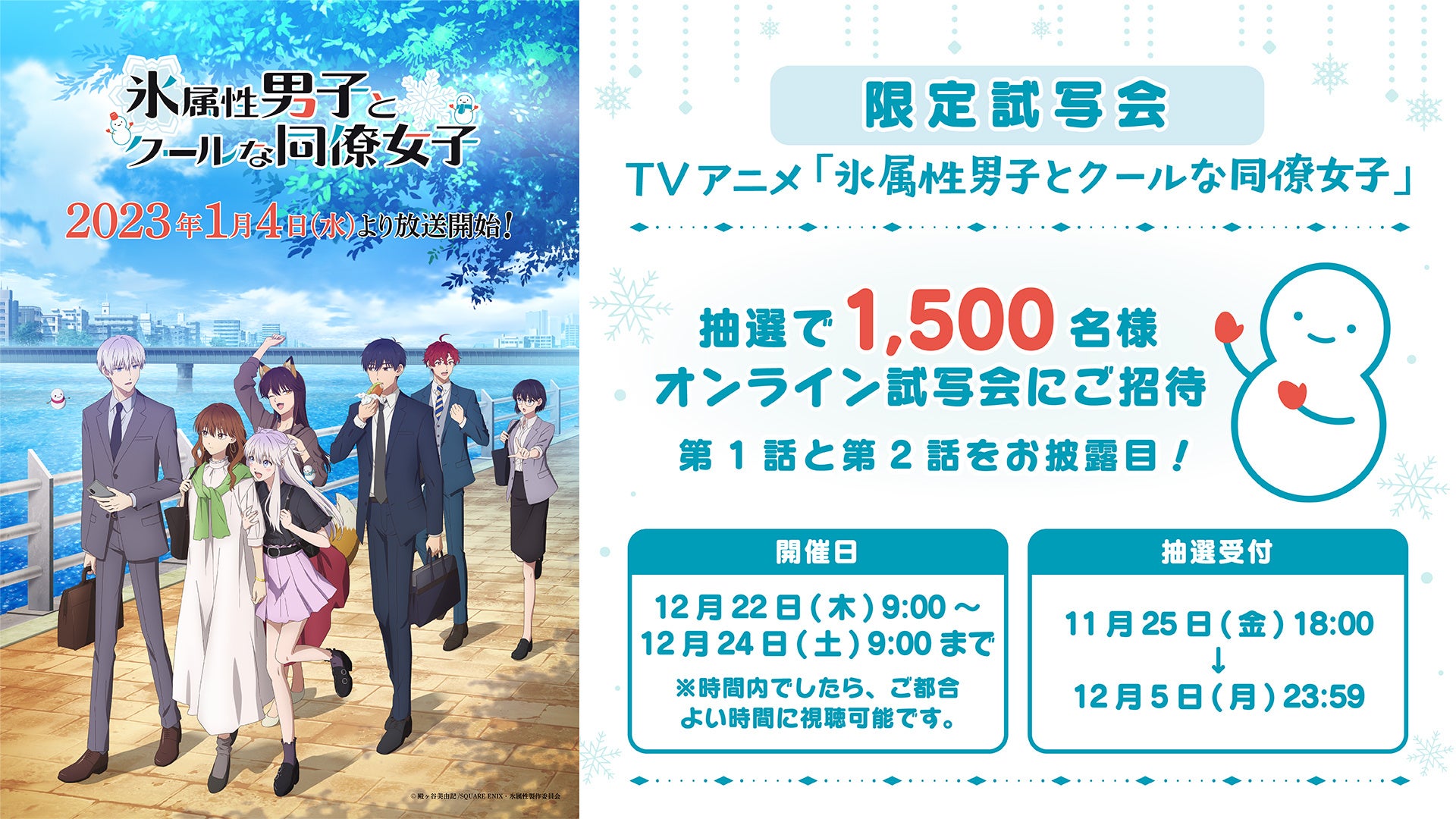 TVアニメ『氷属性男子とクールな同僚女子』第1話・第2話無料オンライン試写会の実施!クラブアニメイト会員限定! 抽選で1,500名様をご招待!
