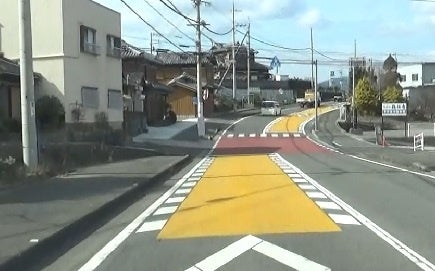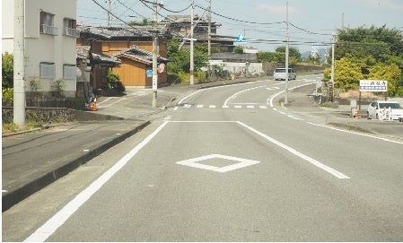 横断歩道の手前と交差点内にカラー舗装と減速マーク(法定外表示)を標示いただき、通行車の速度抑制に繋がり、安全性が向上しました。