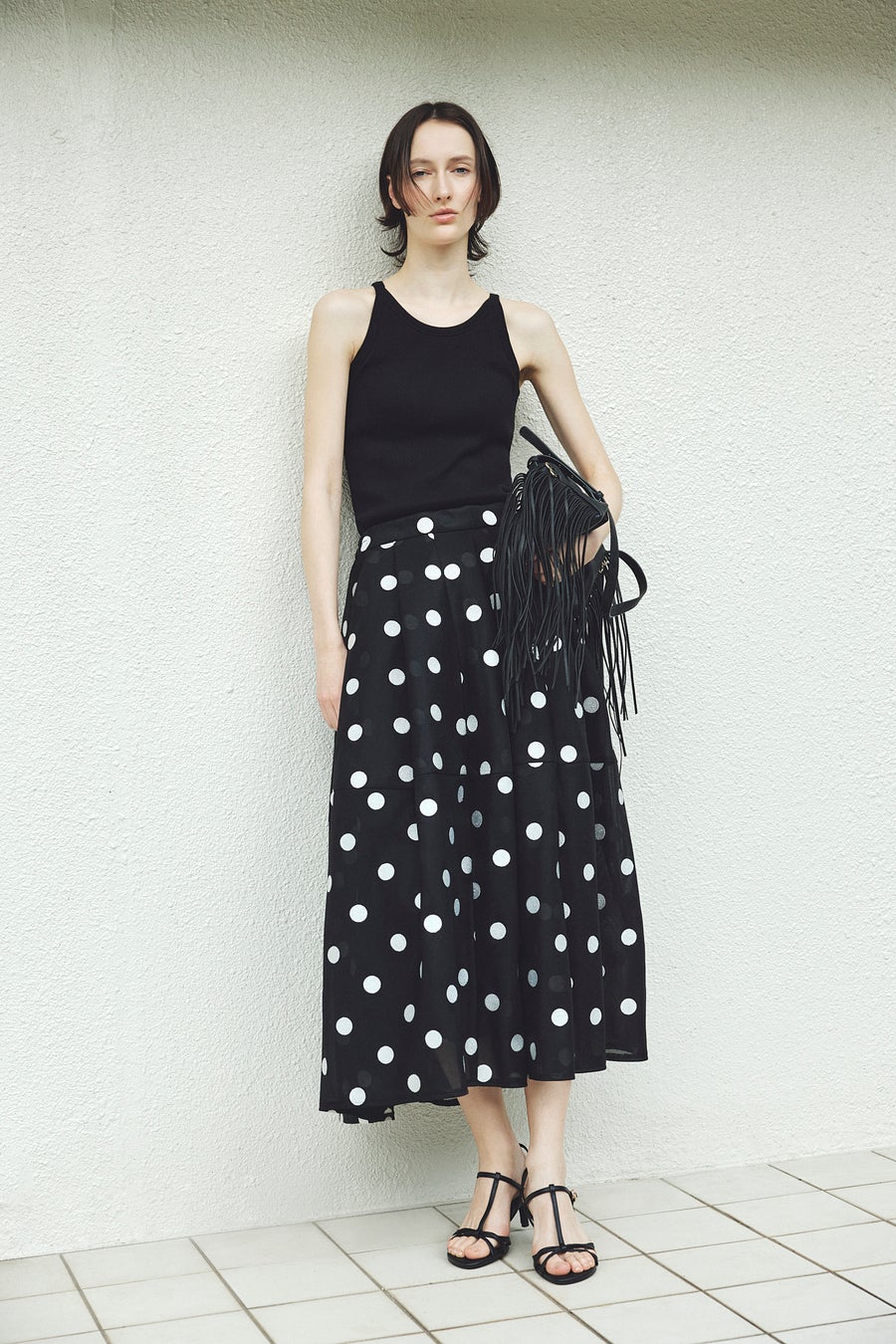 レトロムード漂うポルカドットや、アートピースのようなカットワークレース、リネンミックスの軽やかな素材を用い都会的で洗練されたフェミニンスタイルを提案。