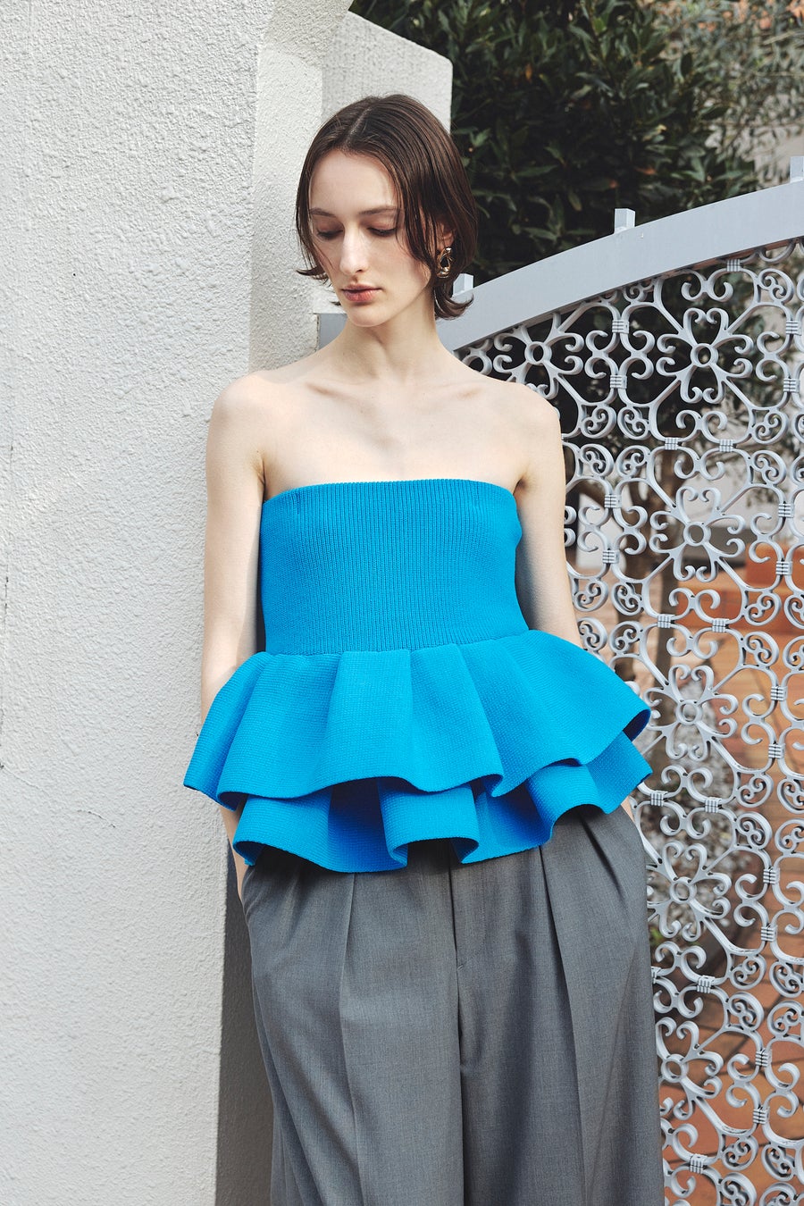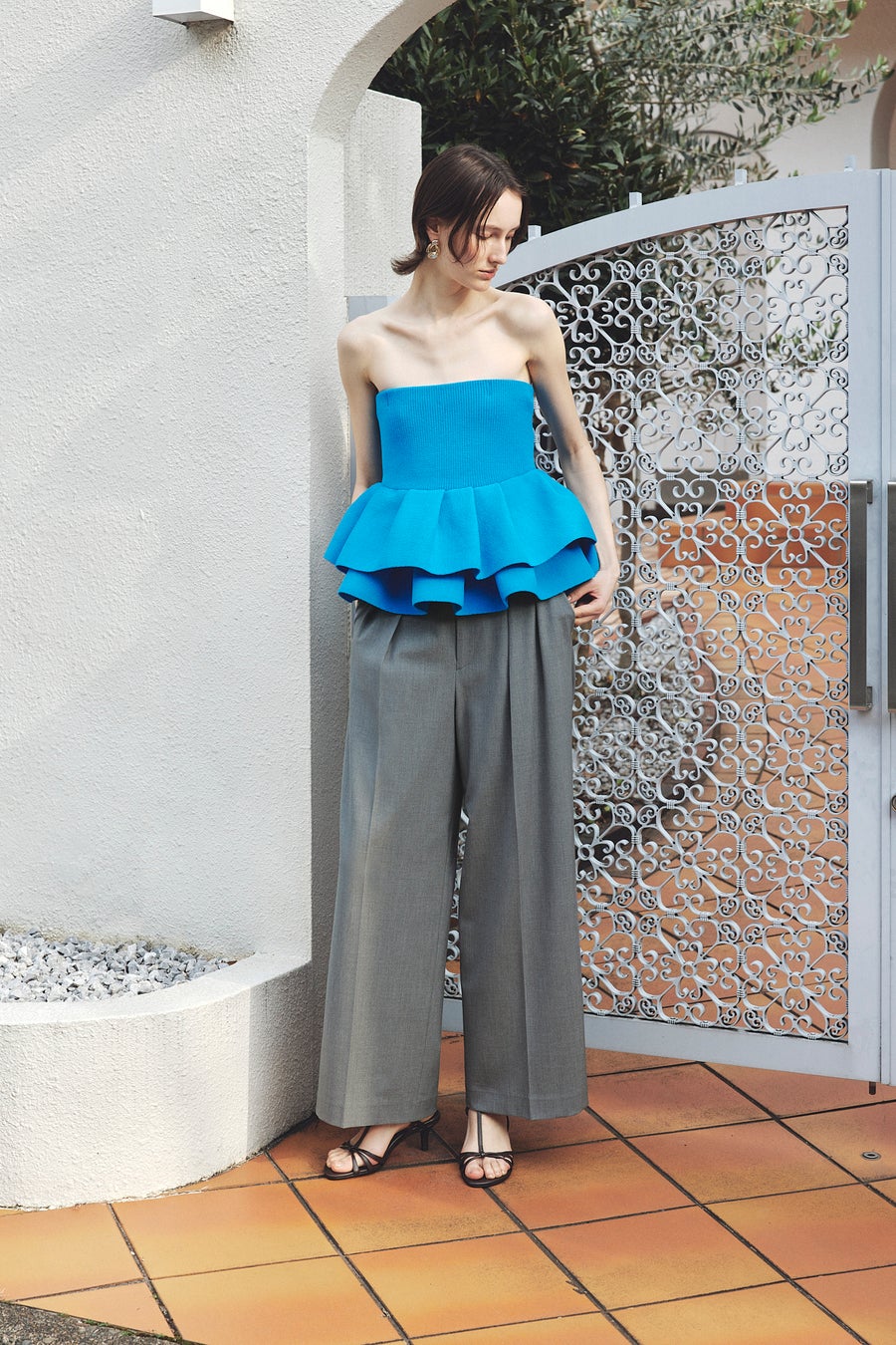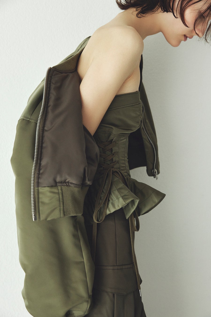 花びらから着想を得た折り重なるラッフルフリル、葉脈のように繊細なレースや、華やかなボタニカルプリント、シアー素材同士を重ねる事で生まれる奥行きと透明感が春の空気をまとうような軽やかさを演出。