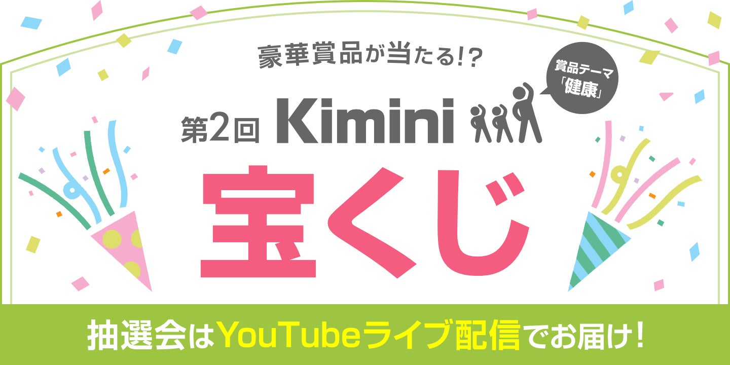 新型コロナウイルス感染症対策による活動制限・運動不足の長期化から、体力低下やストレスの蓄積など、心や身体への影響が懸念されています。Kiminiとしては、皆さまに健康で健やかな生活の中で学習に取り組んでいただきたいという想いから「健康」というテーマに決めました。賞品としては「高級健康家電」や「人気の健康食品」などをラインナップいたしますので、どうぞご期待ください。ちなみに、第1回のテーマはなぜか「カニ?」でした。理由は第1回抽選会のYouTubeアーカイブ動画をご覧ください。