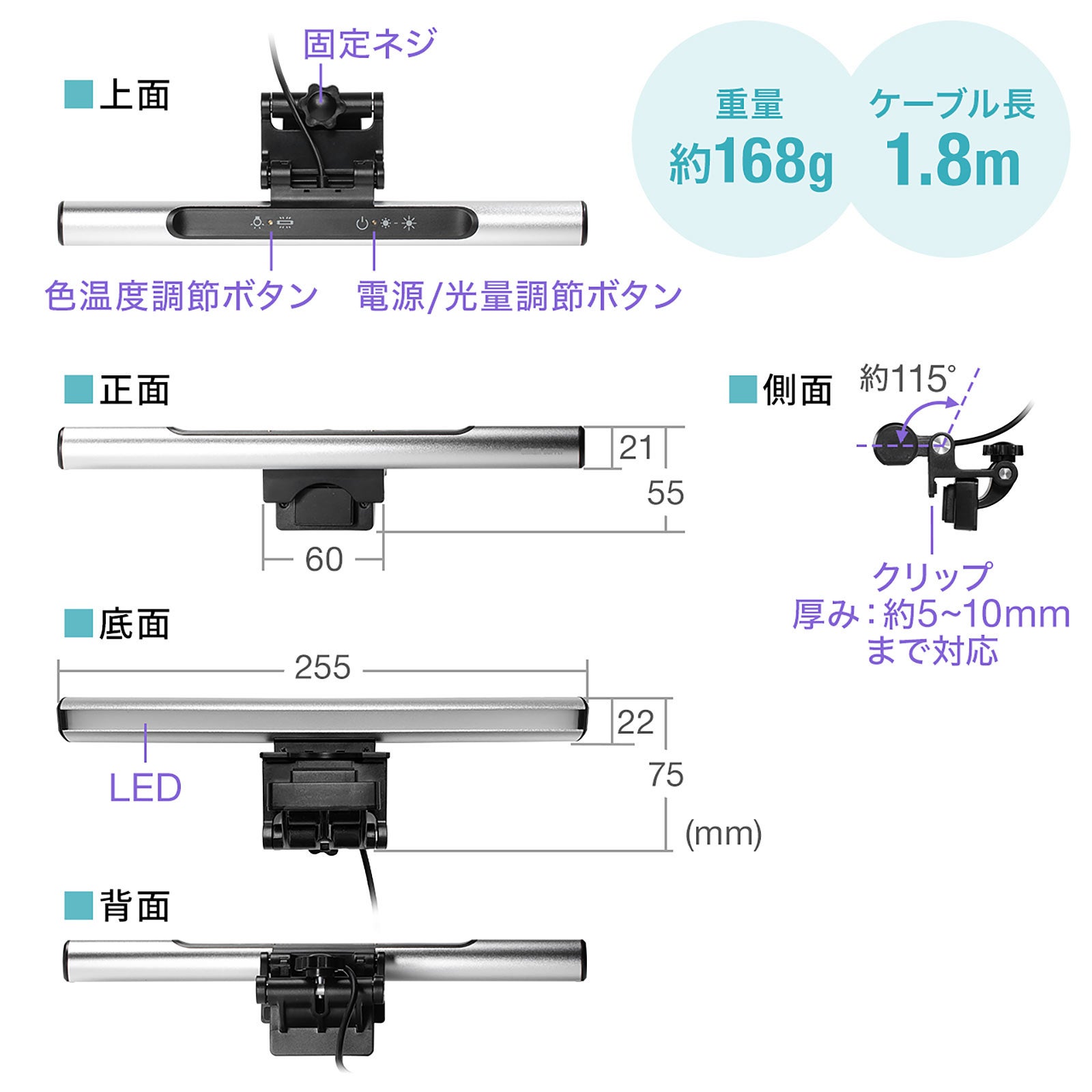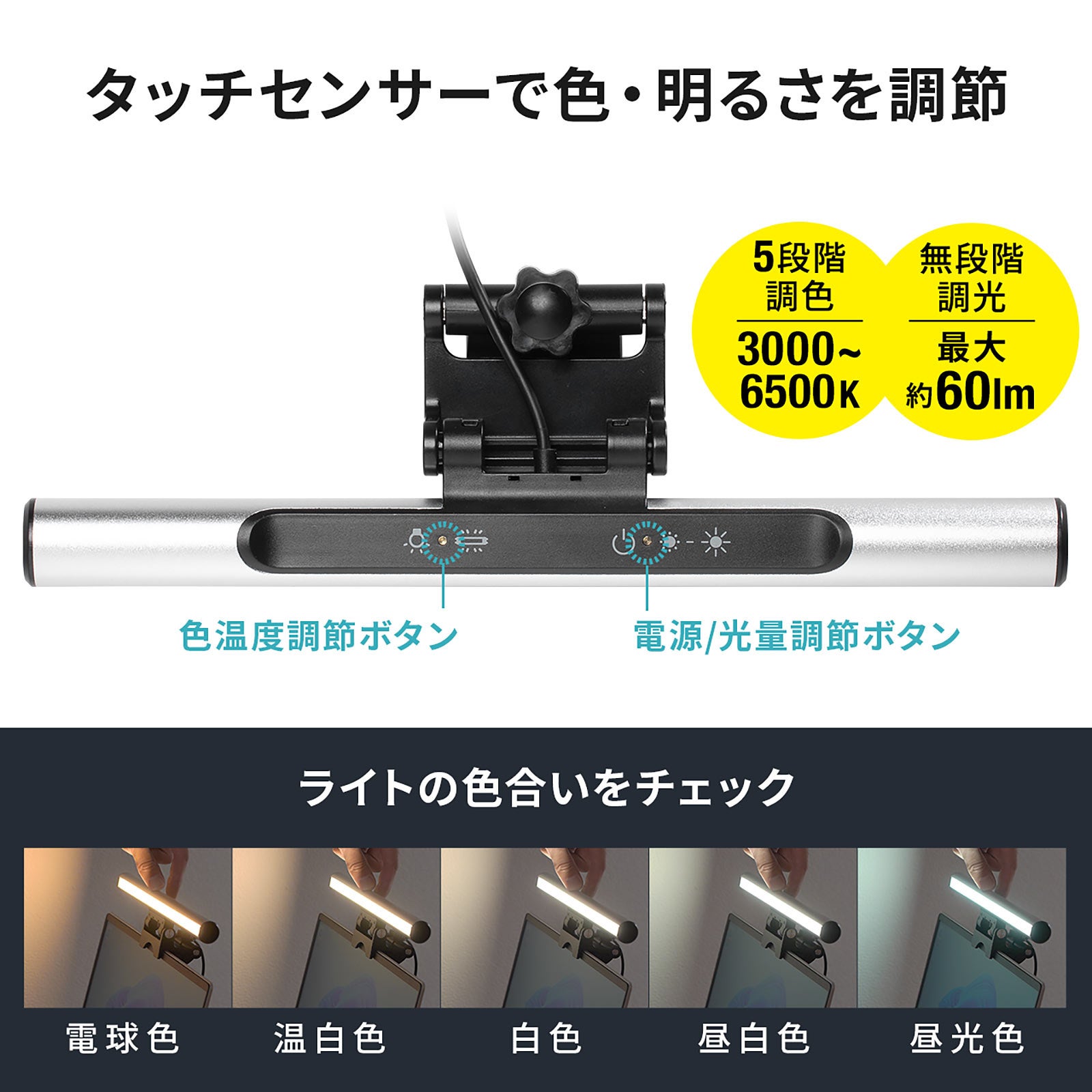 ノートパソコンライト PCライト USBライト クリップライト 無段階調光 調色可能 タッチ操作 最大60ルーメン