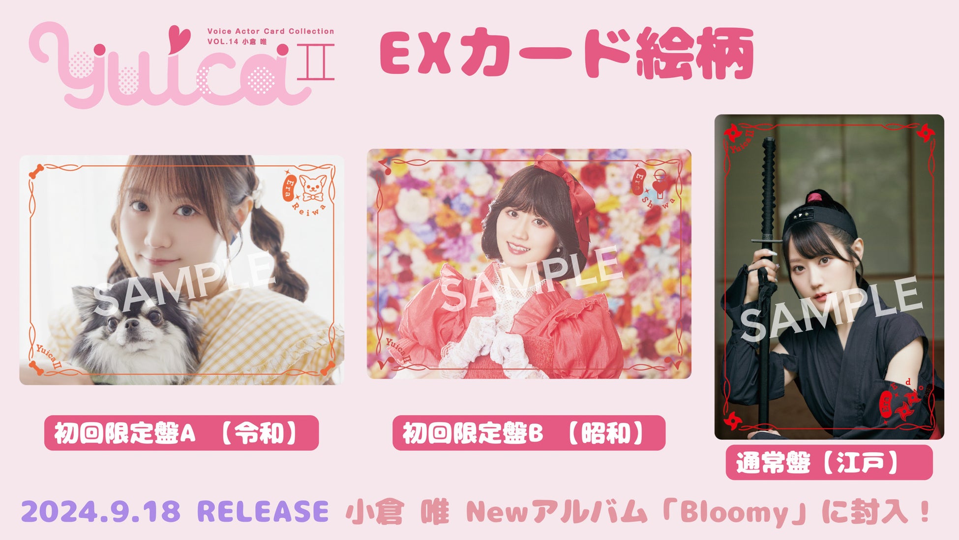 更に、CDに封入されるブシロードクリエイティブより発売されるトレーディングカード「Yuica II~もしも小倉 唯がタイムリープしたら~」EXカードの絵柄や、『小倉 唯 LIVE TOUR 2024 〜Bloomy × Meet you!〜(読み方: ブルーミーチュウ!)』と連動したライブ会場プレゼントキャンペーンの企画も発表になった。