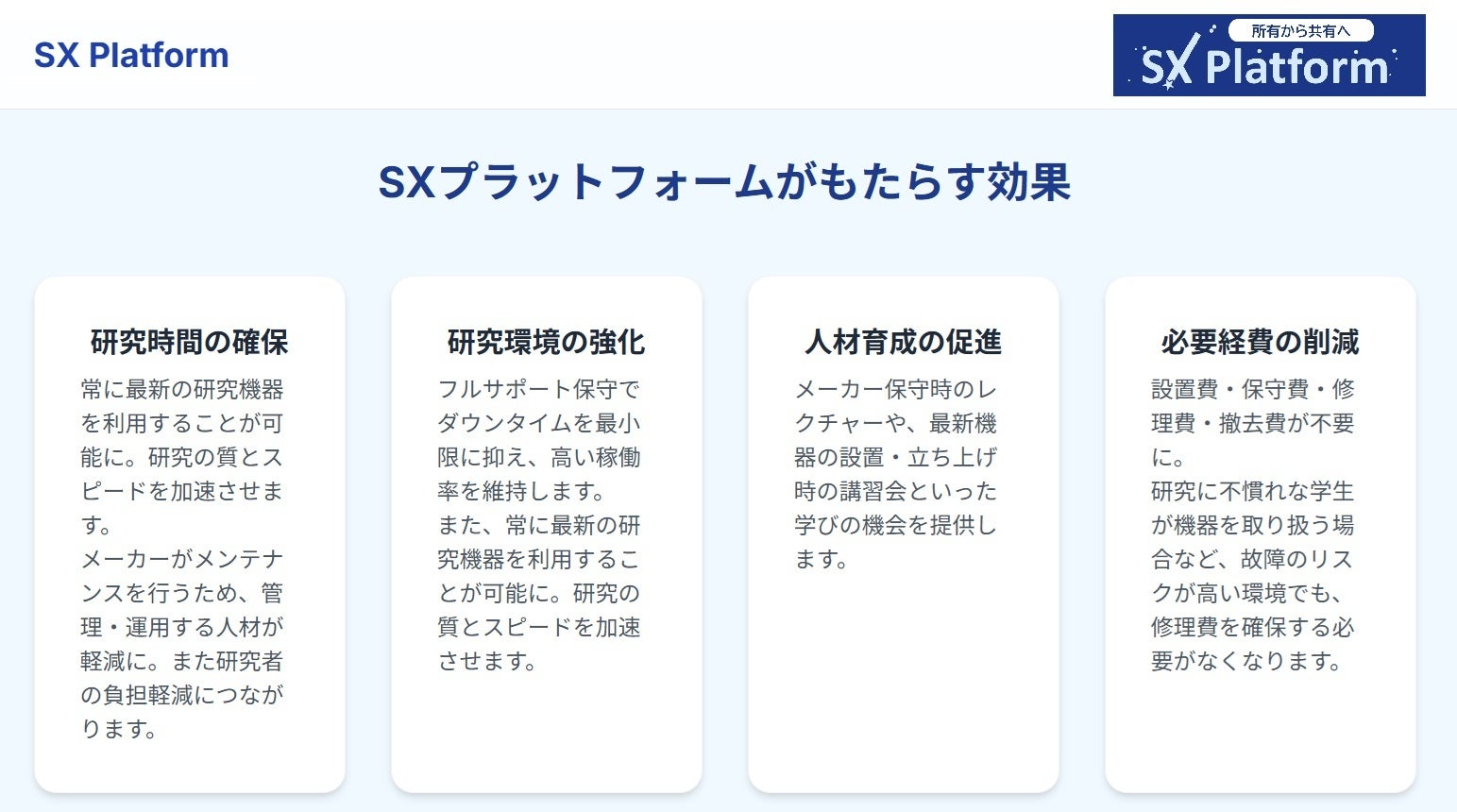 設置費・保守費・修理費・撤去費が不要なお得な研究機器レンタル・リース『SXプラットフォーム』