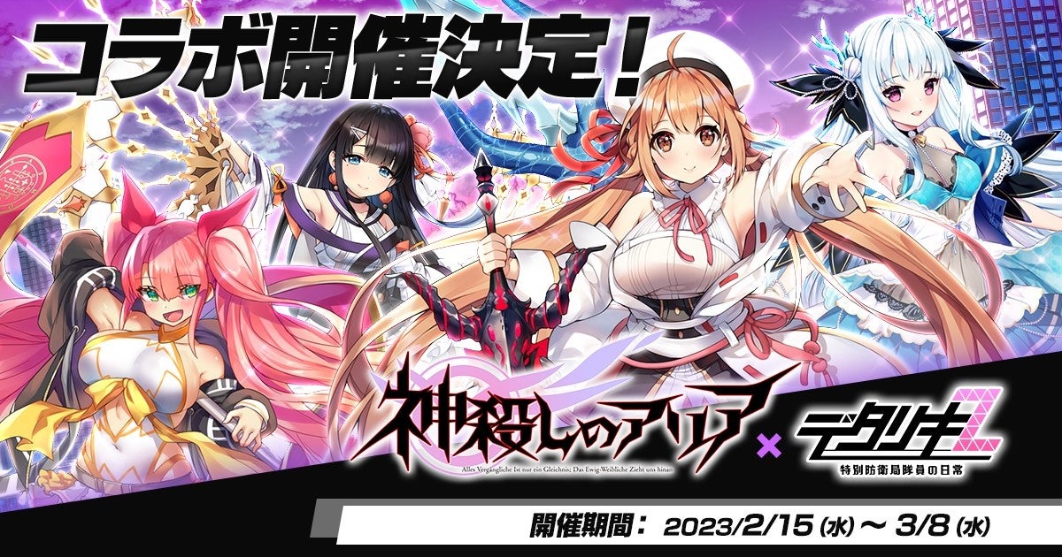 合同会社EXNOA(本社:東京都港区、CEO:村中 悠介、URL:https://games.dmm.com/)が運営するDMM GAMESは、PC(ブラウザ版)/DMM GAMESストア(android向けアプリ)で配信中のフル3Dバトルゲーム『デタリキZ 特別防衛局隊員の日常(以下デタリキ)』において、「デタリキ」×「神殺しのアリア」コラボを2月15日(水)より開催することをお知らせいたします。