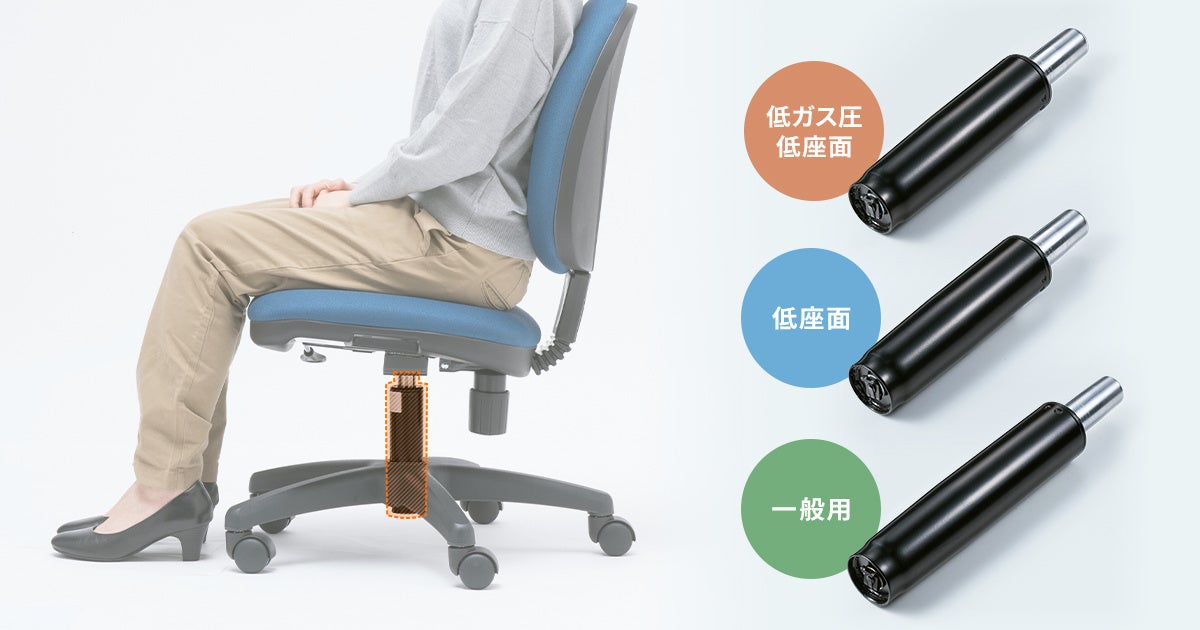 好評発売中のサンワサプライ製チェアに対応したガス圧シリンダーで、シリンダー故障時の交換用として、また、小柄な方の座面の高さを従来より低く調整することができます。