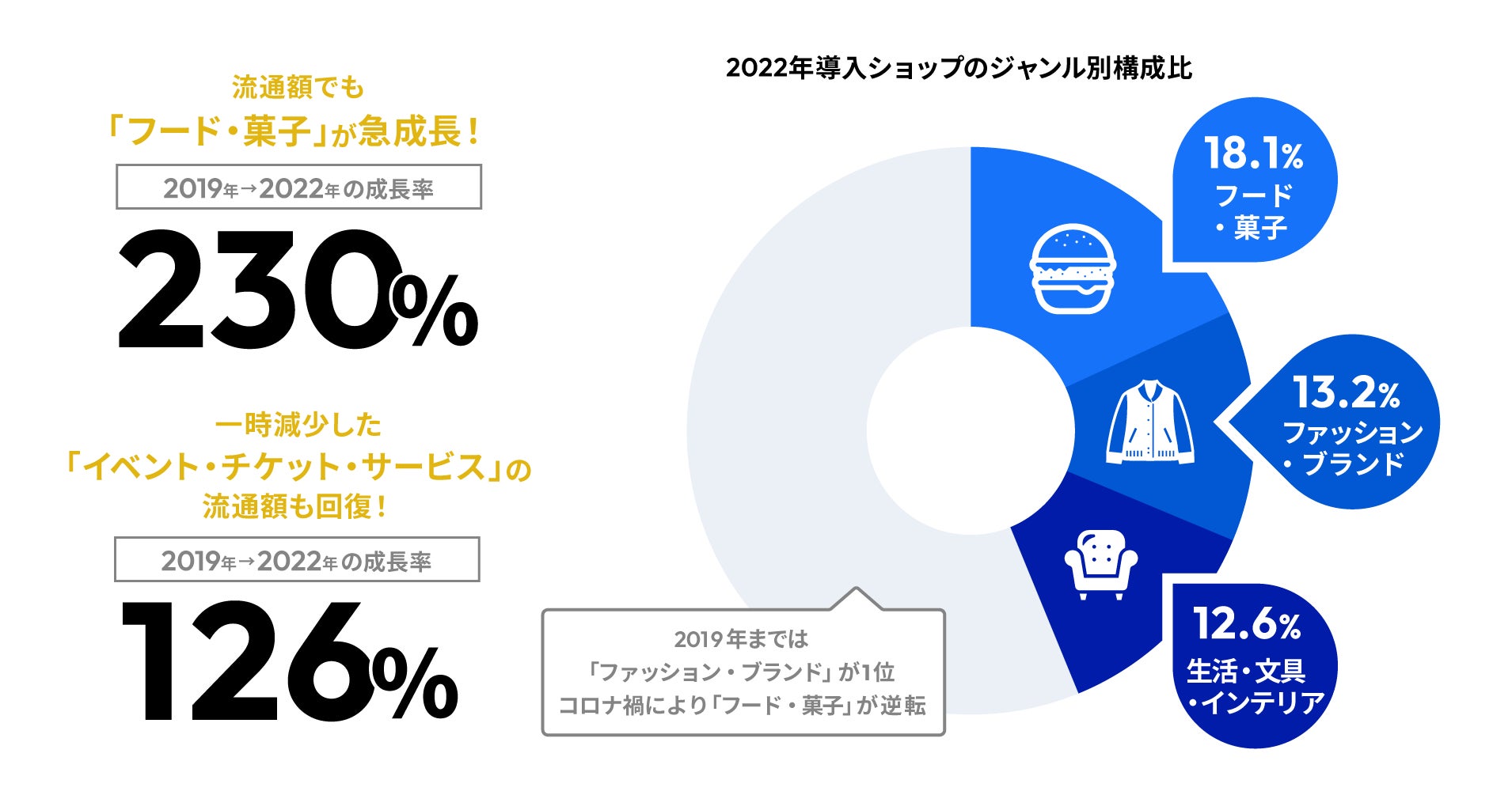 ■ジャンルごとのショップ数では「フード・菓子」が最も多く、流通額も高成長