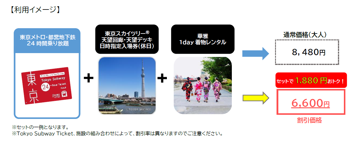 旅行者向け企画乗車券「Tokyo Subway Ticket」と観光施設入場券のセット発売詳細