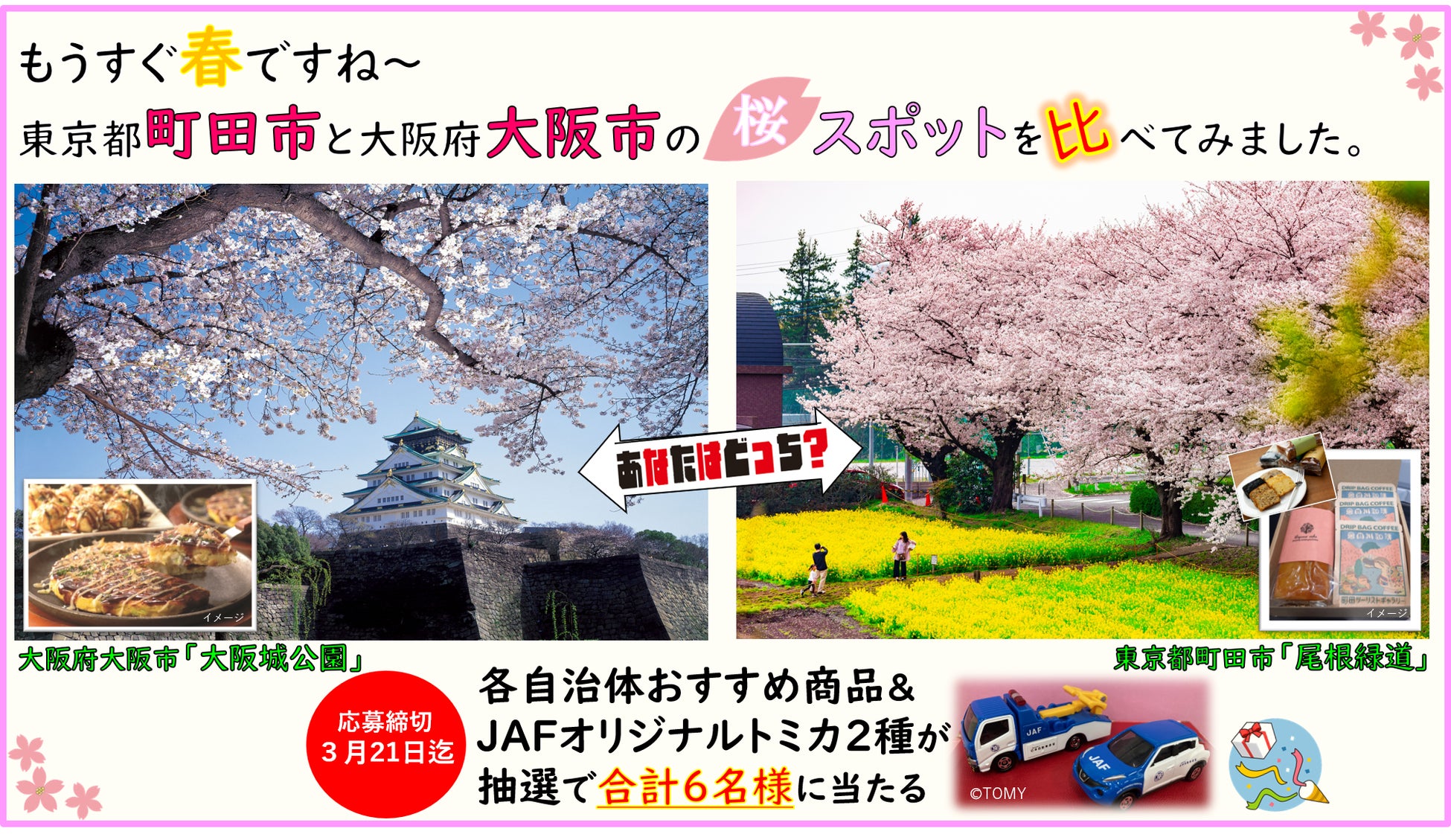 【JAF東京】『もうすぐ春ですね~東京都町田市と大阪府大阪市を比べてみました~』JAFTwitterプレゼントキャンペーンを開催します