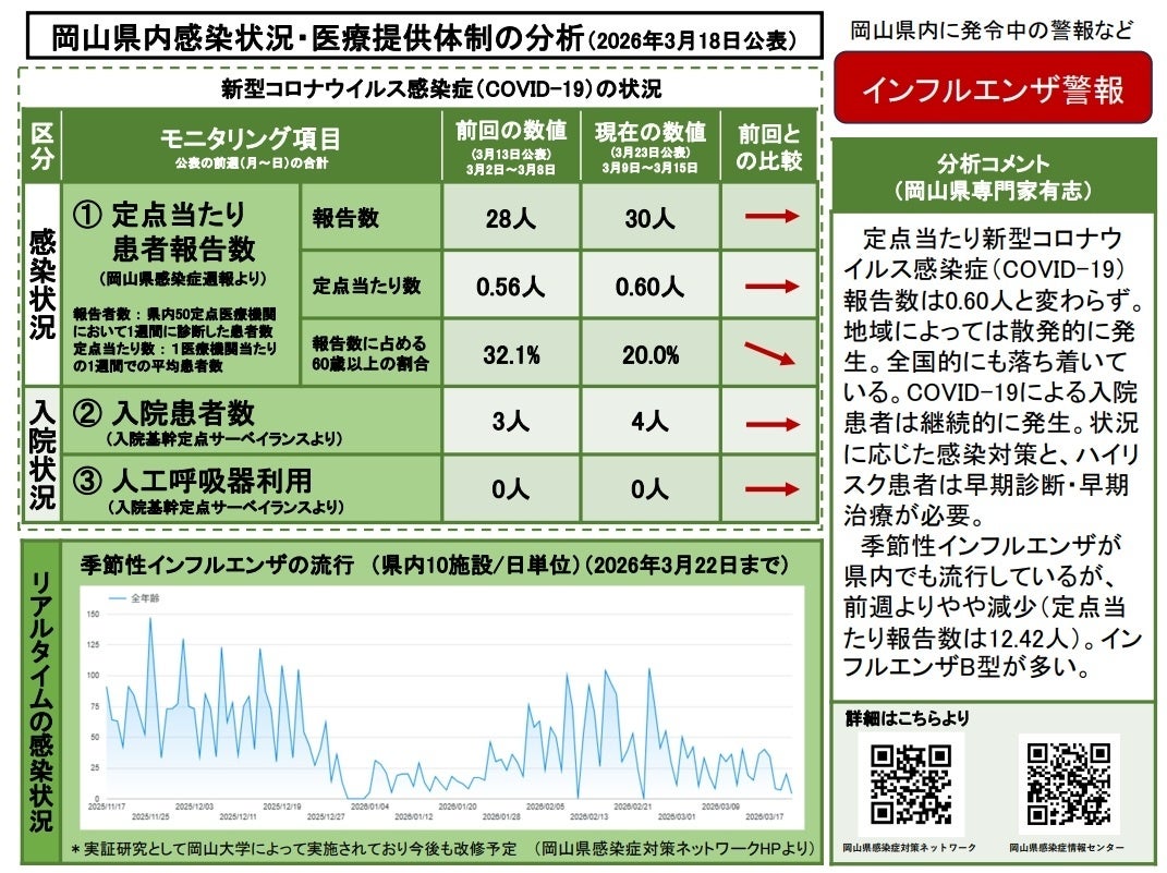 【岡山大学】岡山県内の感染状況・医療提供体制の分析について(2026年3月18日現在)