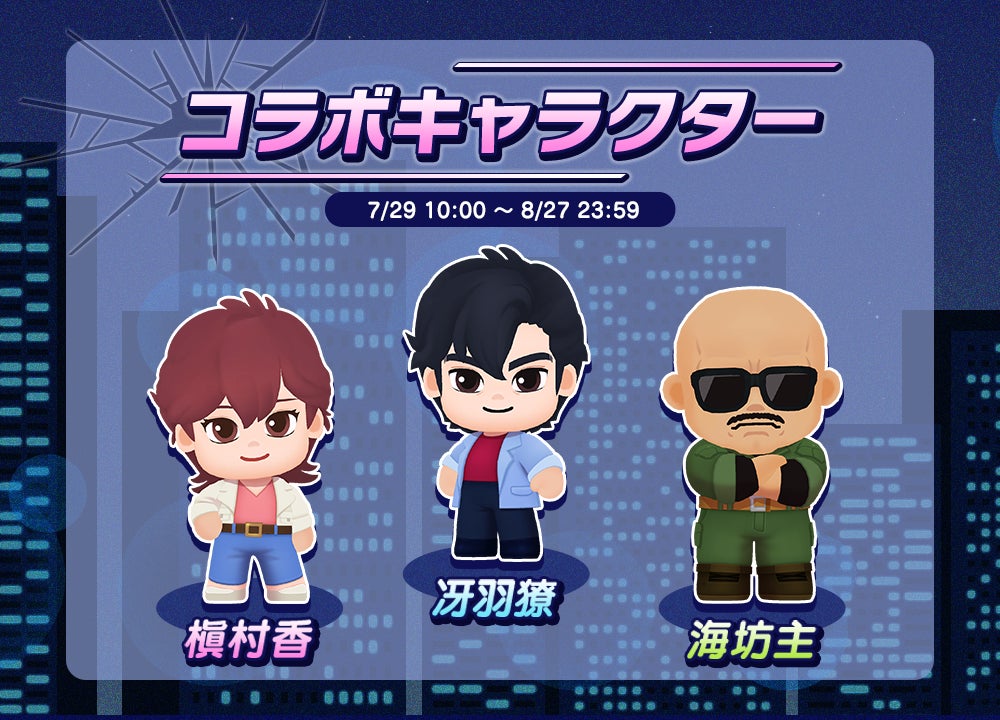 本コラボレーションでは、「冴羽獠」「槇村香」「海坊主」がコスチュームとしてゲーム内に登場するほか、『シティーハンター』をモチーフにしたスペシャルブックや、カードなども登場。さらに、コラボ限定LINEスタンプも配信いたします。