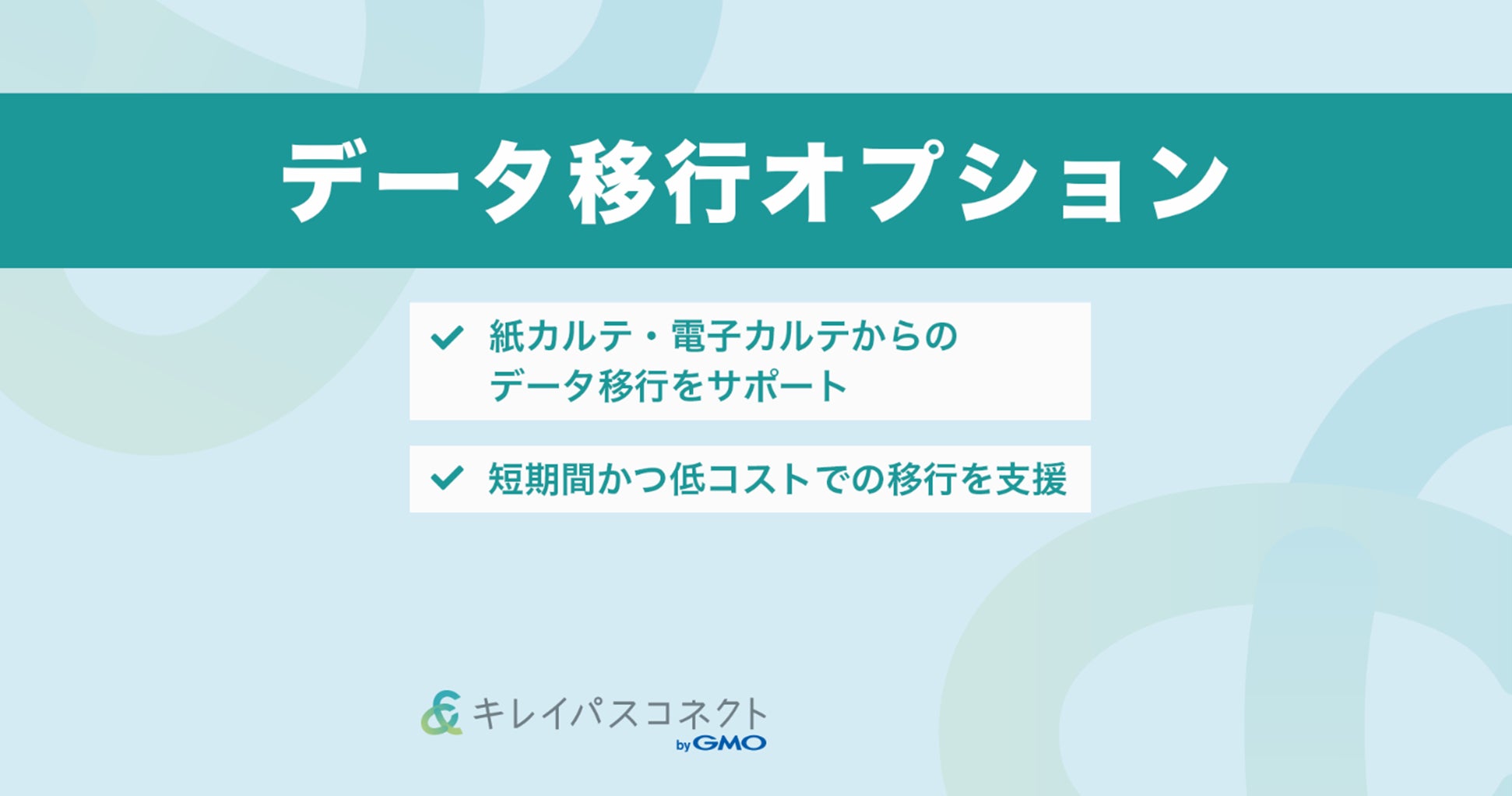 GMOインターネットグループのGMOくまポン株式会社(代表取締役社長:高橋 良輔 以下、GMOくまポン)が提供する、自由診療クリニック向け経営支援プラットフォーム「キレイパスコネクト byGMO」(URL:https://connect.kireipass.jp/)は、2023年3月17日(金)より『データ移行オプション』の提供を開始いたします。