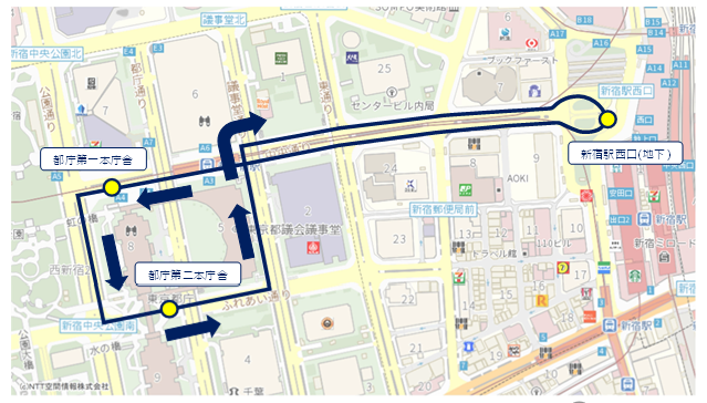 新宿駅西口 ~ 都庁第一庁舎 ~ 都庁第二庁舎 ~ 新宿駅西口