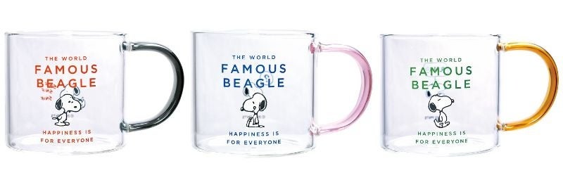 - 【PEANUTS】耐熱ガラスマグ(レッド/ブルー/グリーン) 各2,200 円(税込)