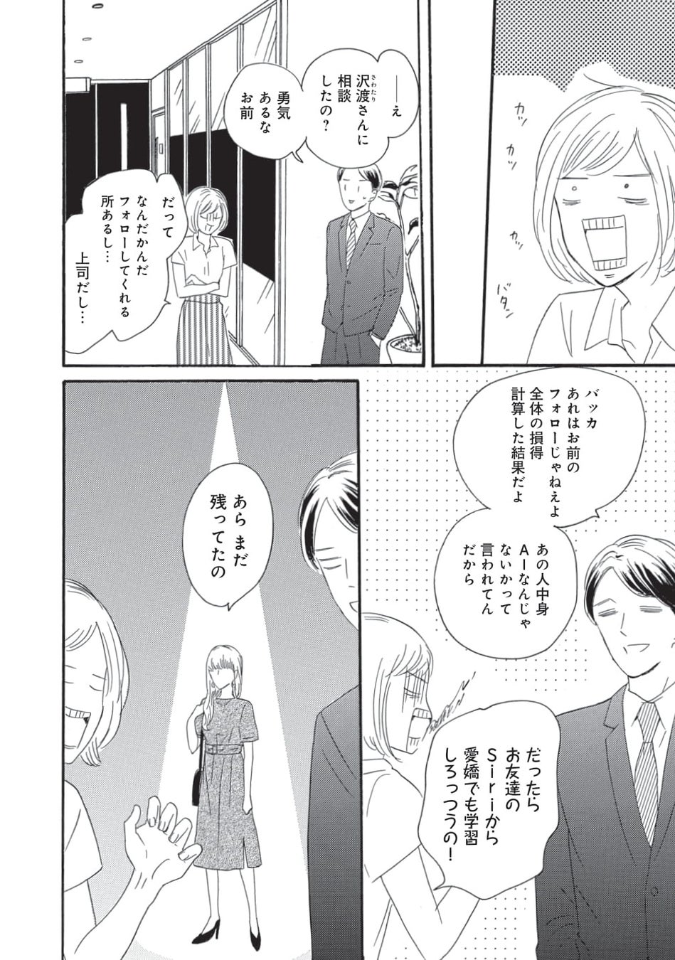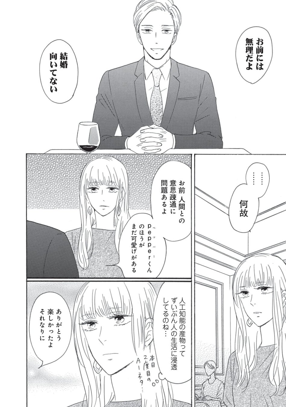 何事も計画第一で、“中身はAI”と評される主人公・依子と、軽くてチャラくてつかみ所のないエステティシャン・慧士。