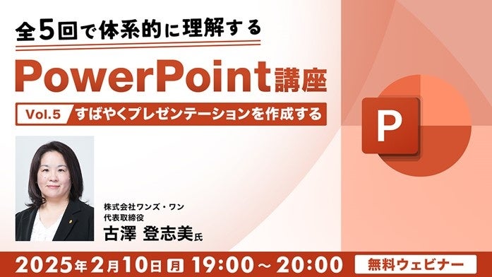 効率的な方法を活用してすばやくPPTでプレゼンテーションを作成しよう!2/10(月)無料セミナー「全5回で体系的に理解するPowerPoint講座Vol.5」開催