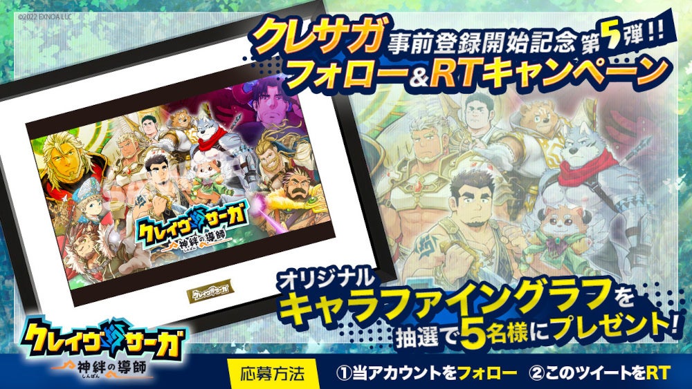期間中、クレサガ公式Twitterアカウントをフォローし、対象のツイートをリツイートすると抽選で5名様にクレサガキービジュアルをあしらったファイングラフアートをプレゼント!