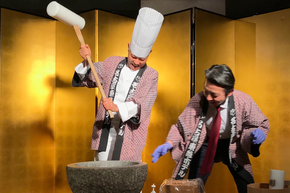 1月2日には、書道家 川本大幽氏が力強い筆づかいで新年の言葉を書き上げる「書初めパフォーマンス」を実施し、ホテルロビーが一層華やいだ雰囲気に包まれます。1月3日には、お客様にもご参加いただける「祝い餅つき&振る舞い餅」を開催し、つきたてのお餅を味わいながら新年の賑わいをお楽しみいただけます。